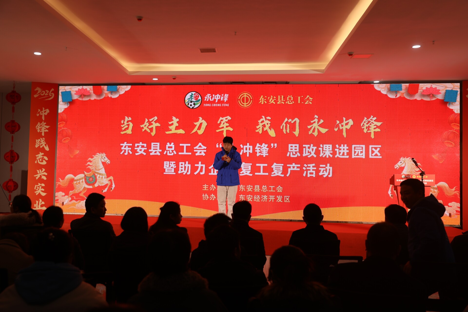 新湖南客户端3月3日讯(通讯员 庾先文)3月3日,东安县总工会开展“永冲锋”思政课进园区暨助力企业复工复产活动,以多元形式为园区职工送上暖心服务与精神赋能。