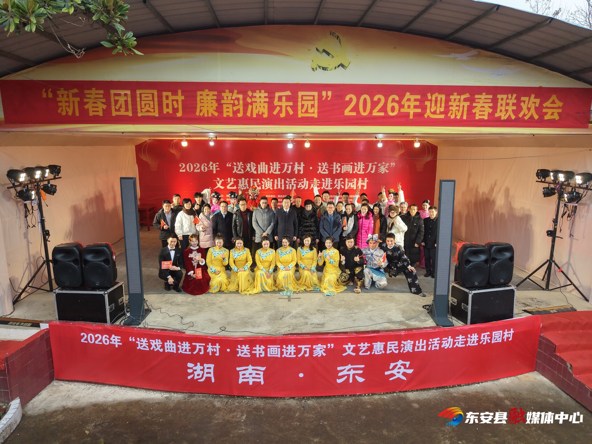 新湖南客户端1月22日讯(通讯员 唐佳莉 邓志宇)1月21日上午,2026年湖南省“送戏曲进万村 送书画进万家”文艺惠民演出暨“新春团圆时 廉韵满乐园”迎新春联欢会在东安县紫溪市镇乐园村举办。湖南省湘剧院党委书记、院长郑声宏,湖南省文化和旅游厅艺术处四级调研员廖祺,永州市监委委员申莉芬出席,东安县委副书记、统战部部长李月红,县委常委、县纪委书记、县监委主任唐青松,副县长秦琦,县政协副主席李瑞霞,县政协副主席候选人提名人选李艳金参加。