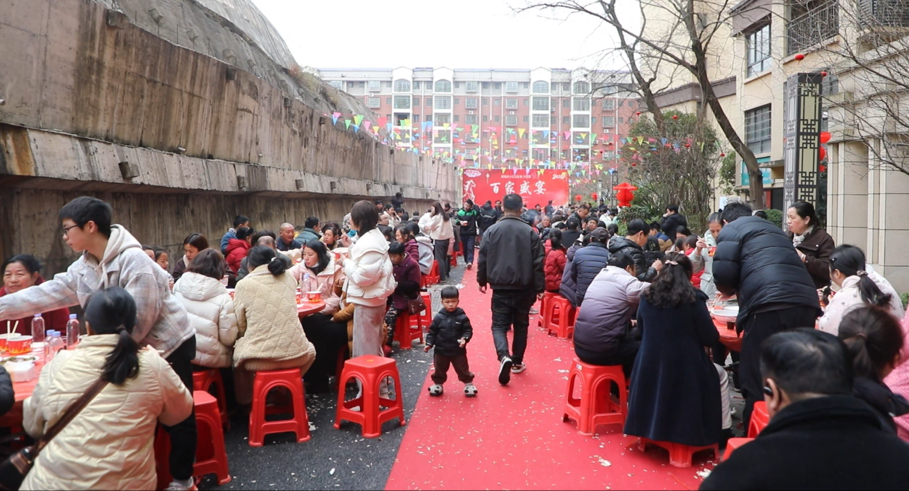 文艺表演落幕,百家盛宴正式开席。一道道精心烹制的红烧肉、特色小炒等美味佳肴摆满餐桌,香气扑鼻、色泽诱人。业主们围坐一桌,闲话家常,从菜品风味聊到生活点滴,陌生感在欢声笑语中消散,邻里情谊在温馨氛围中升温。