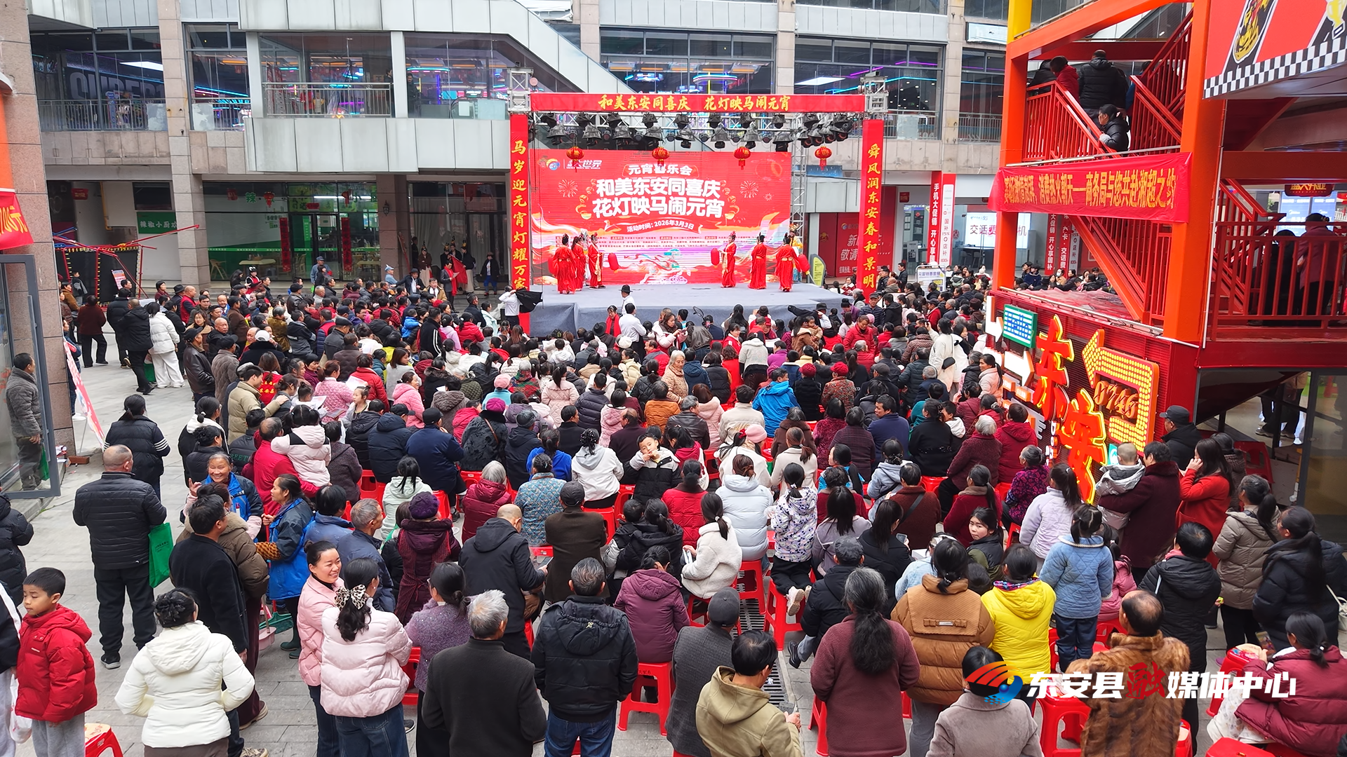 新湖南客户端3月4日讯(通讯员 邓志宇 唐桂海)3月3日,2026年东安县“和美东安同喜庆 花灯映马闹元宵”闹元宵暨文旅促消费系列活动在县小镇大世界购物中心热闹启幕,非遗盛宴与民俗狂欢交织,年味浓郁。