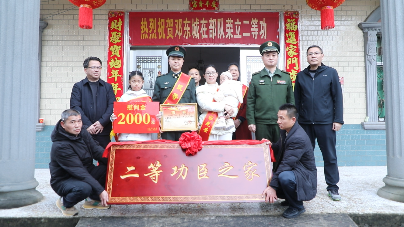 “邓东城荣立二等功,我们全家特别开心,感谢部队培养、家乡的关心。我会照顾好家庭、守护好后方,让他没有后顾之忧,安心在部队服役,继续为国家奉献力量。”家属王艳芳满怀高兴与激动地说。