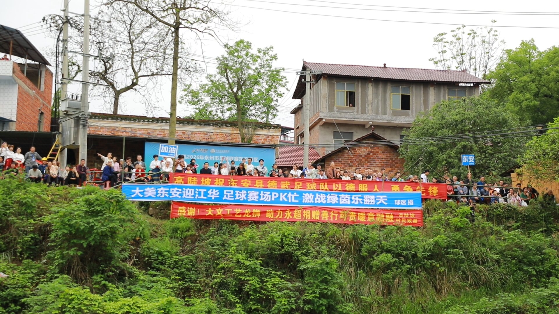 除专属“长者票”外,东安还充分利用赛场周边空间,在足球场围栏外、人行道及离崇德学校不远的山坡上的村民区,推出40个“梯票”“坡票”观赛。开赛前,坡票区还精心准备了腰鼓表演、歌曲演唱、广场舞等文艺节目,在正式球赛开始前便点燃现场热情,进一步营造全民参与、欢乐共享的足球赛事氛围。
