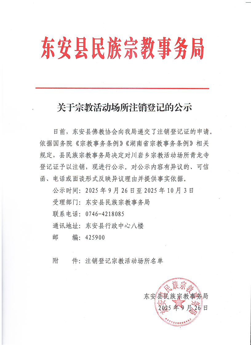 关于宗教活动场所注销登记的公示