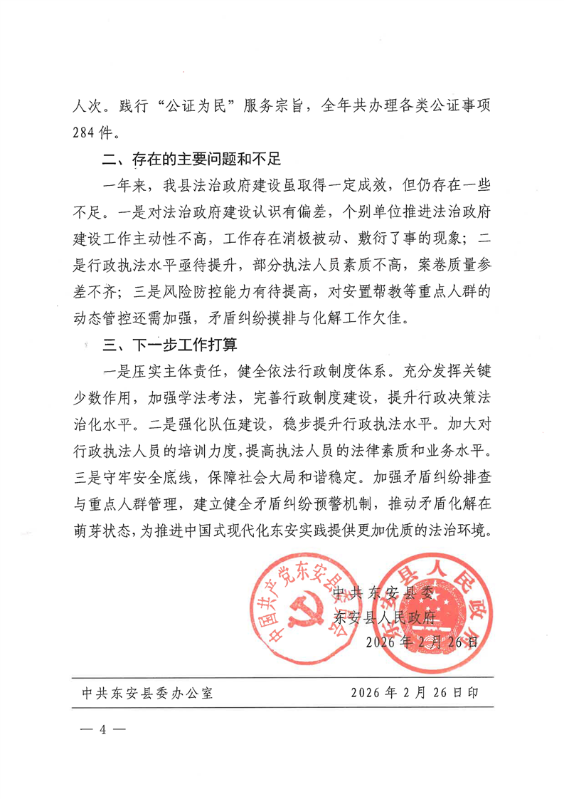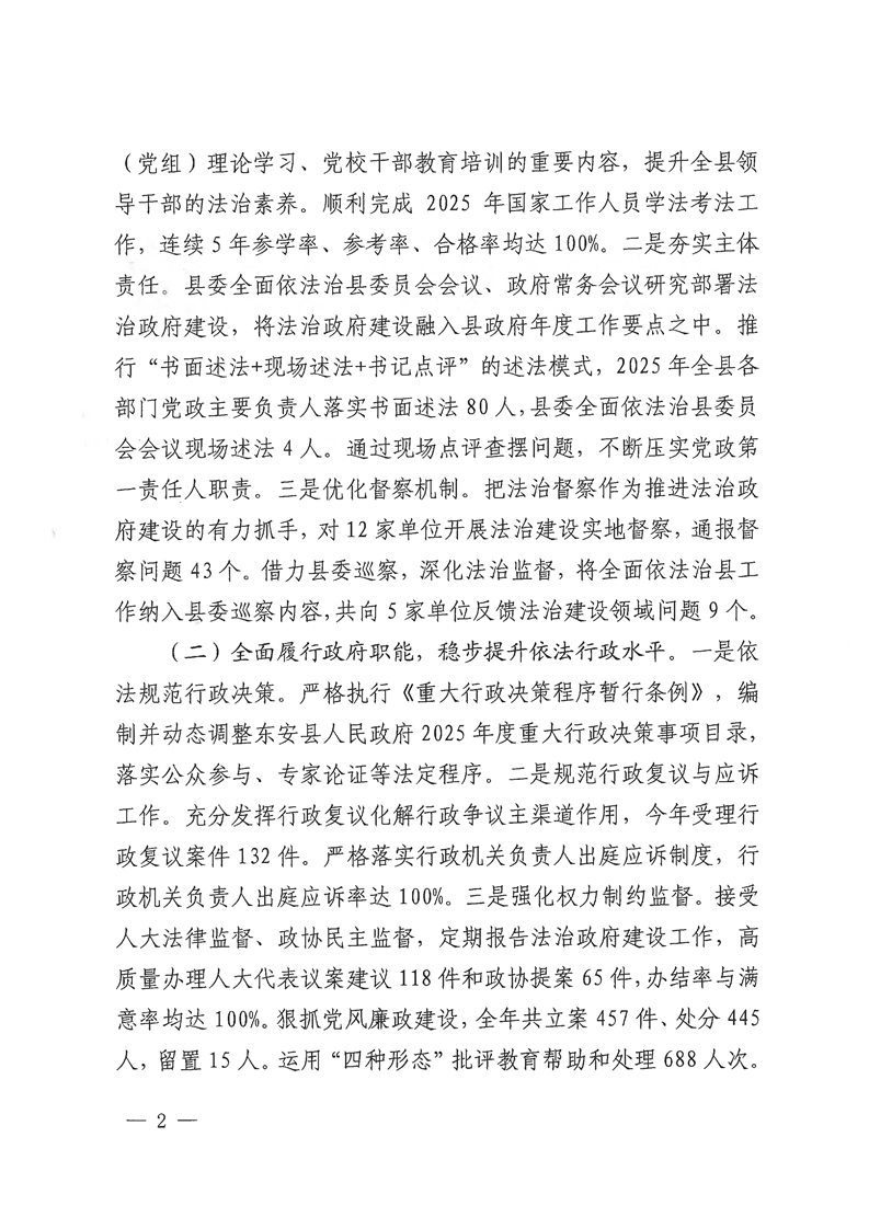 东安县2025年法治政府建设报告