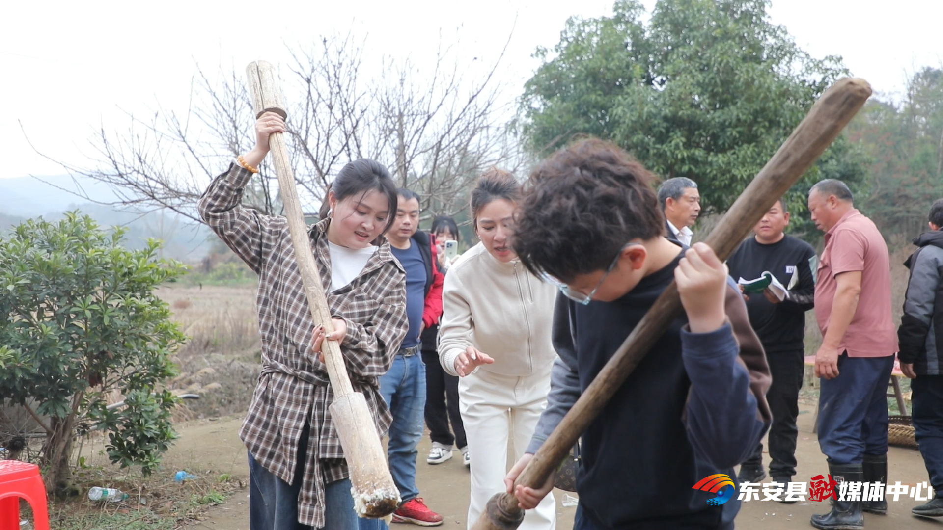 活动现场热闹非凡,村民们自编自导自演文艺节目,歌声阵阵、掌声连连。大家一同体验打糍粑等民俗文化,浓浓年味扑面而来。来自江苏省盐城市的邱秋一家,专程来到东安感受乡村年味,沉浸式体验原生态的农村生活,真切感受到了当地乡亲的淳朴与热情,这段跨省过年的经历也让他们倍感温暖、记忆深刻。