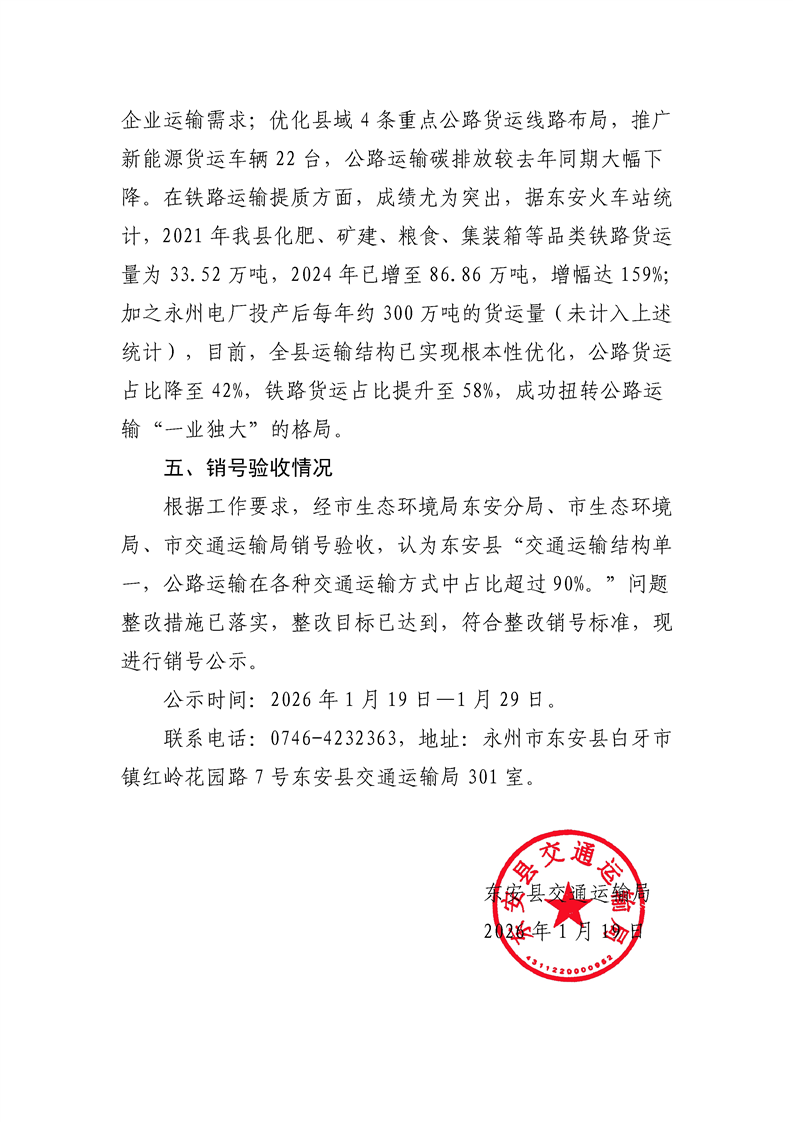 发文机关: 东安县交通运输局 发文日期: 2026-01-19