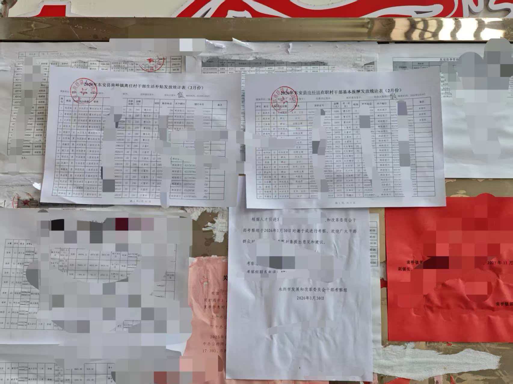 名称: 2026年东安县南桥镇在职村干部基本报酬离任村干部生活补贴发放统计表(2月份)