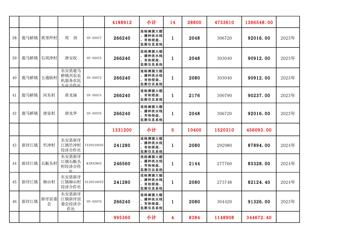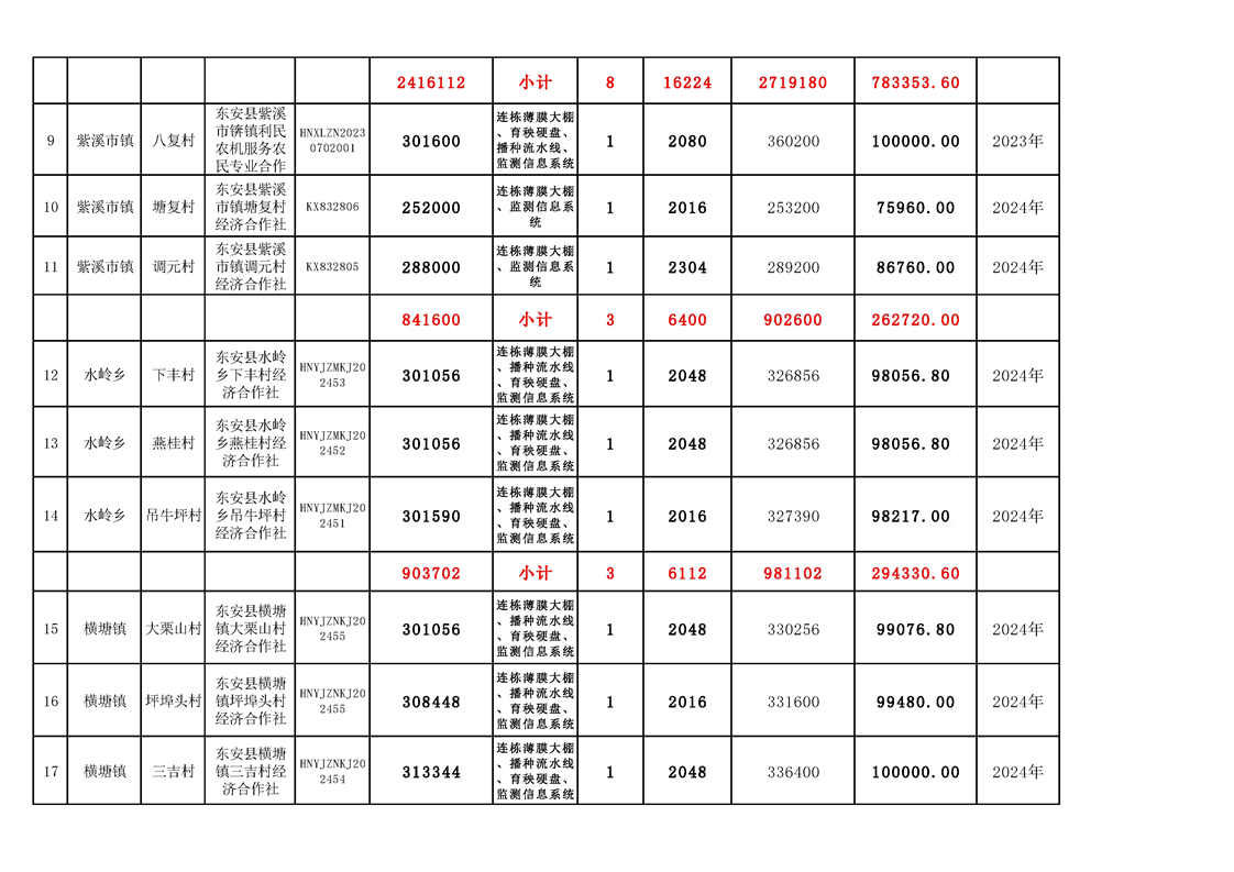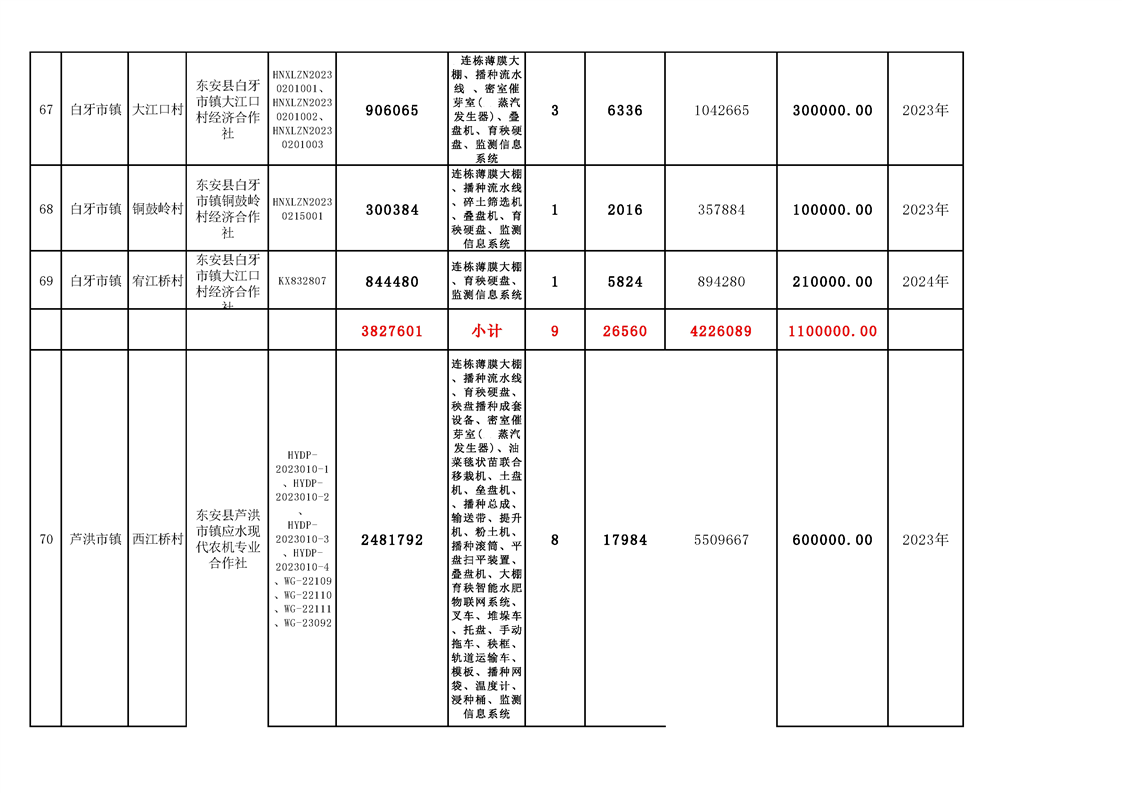 名称: 东安县2023-2024年各乡镇新建集中育秧设施拟补贴名单公示