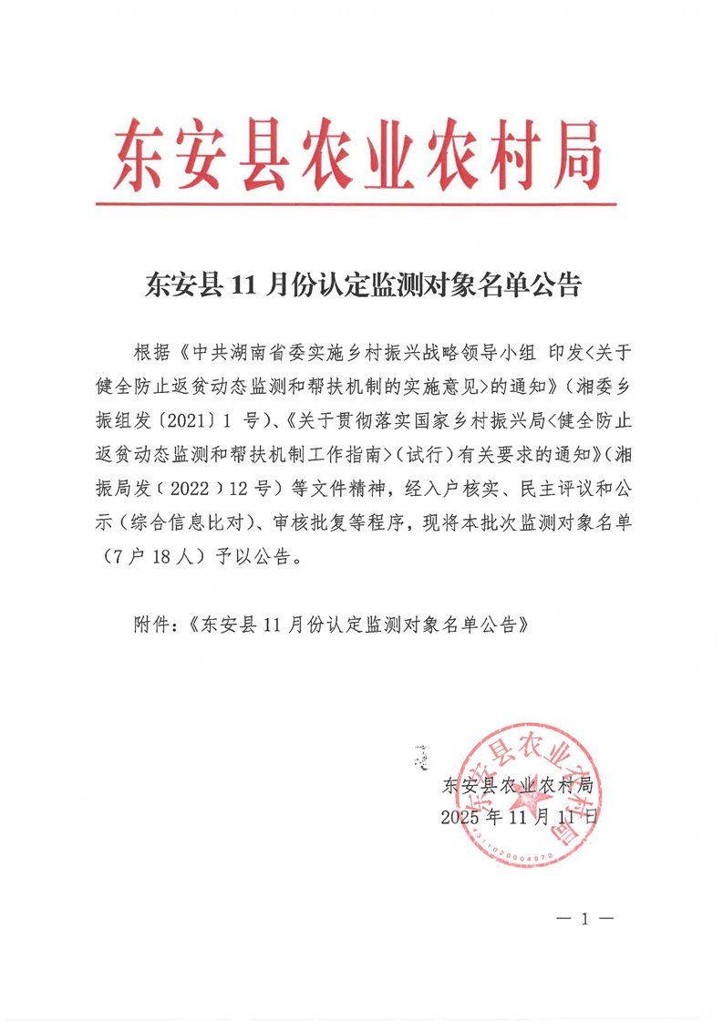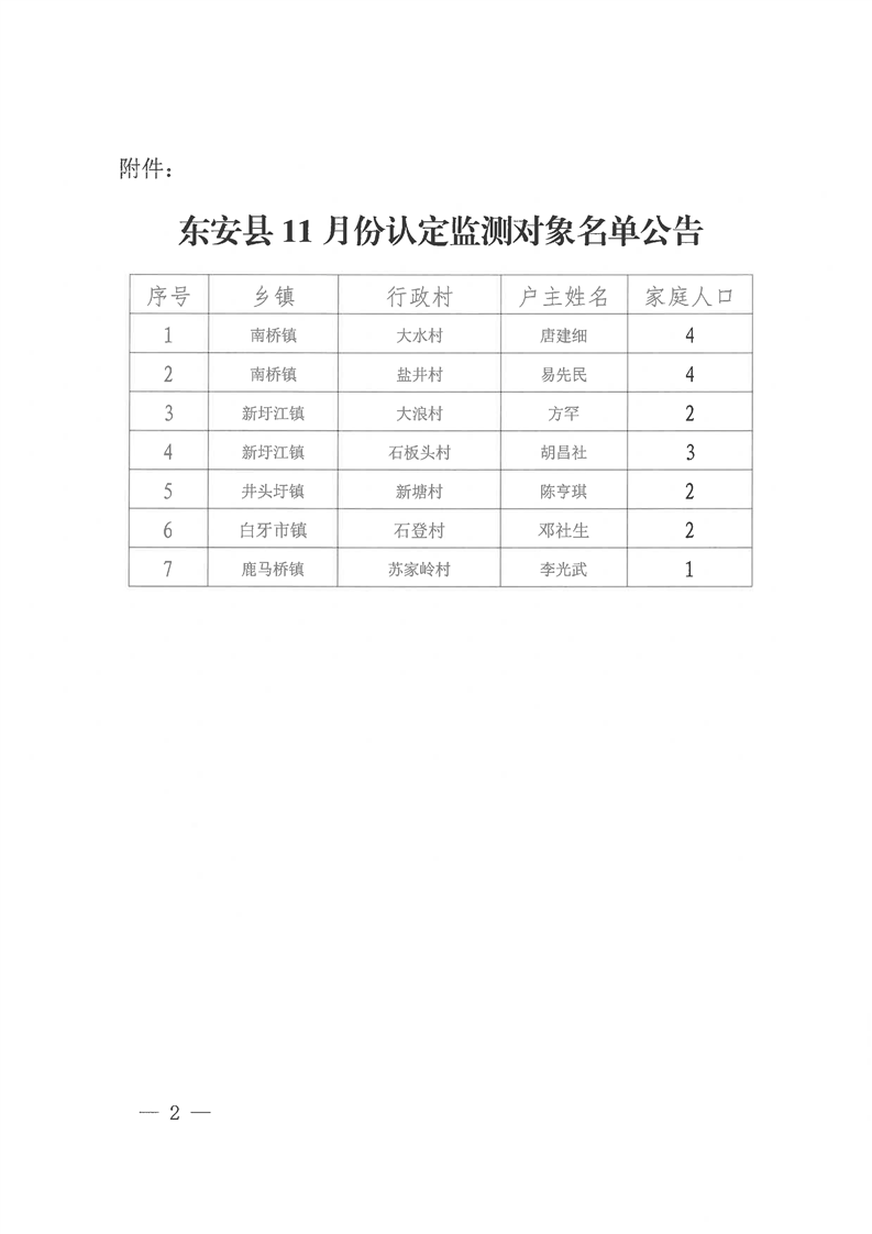名称: 东安县11月份认定监测对象公告