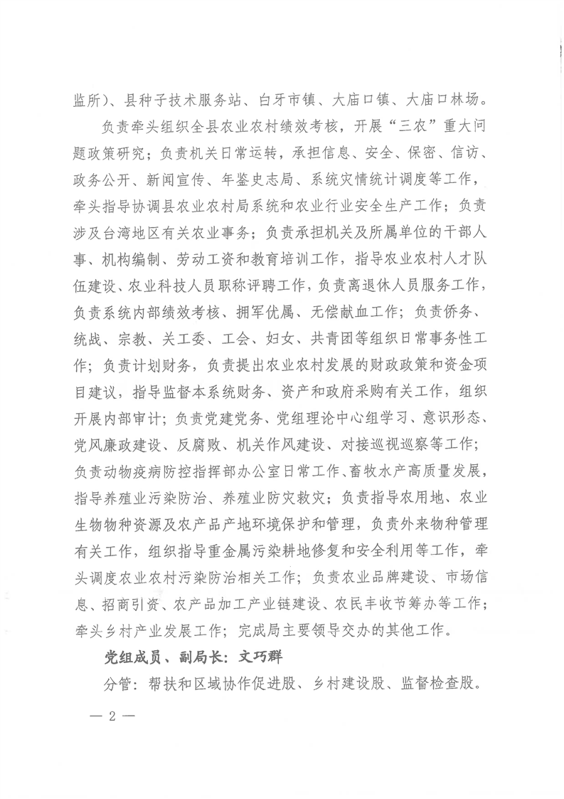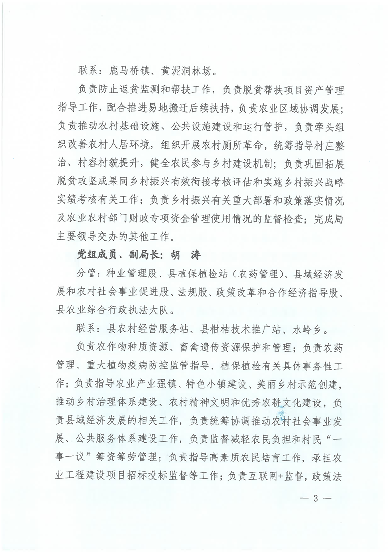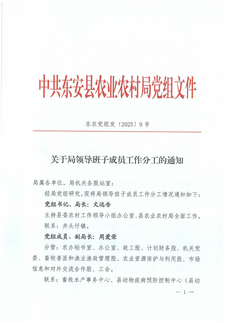名称: 关于局领导班子成员工作分工的通知