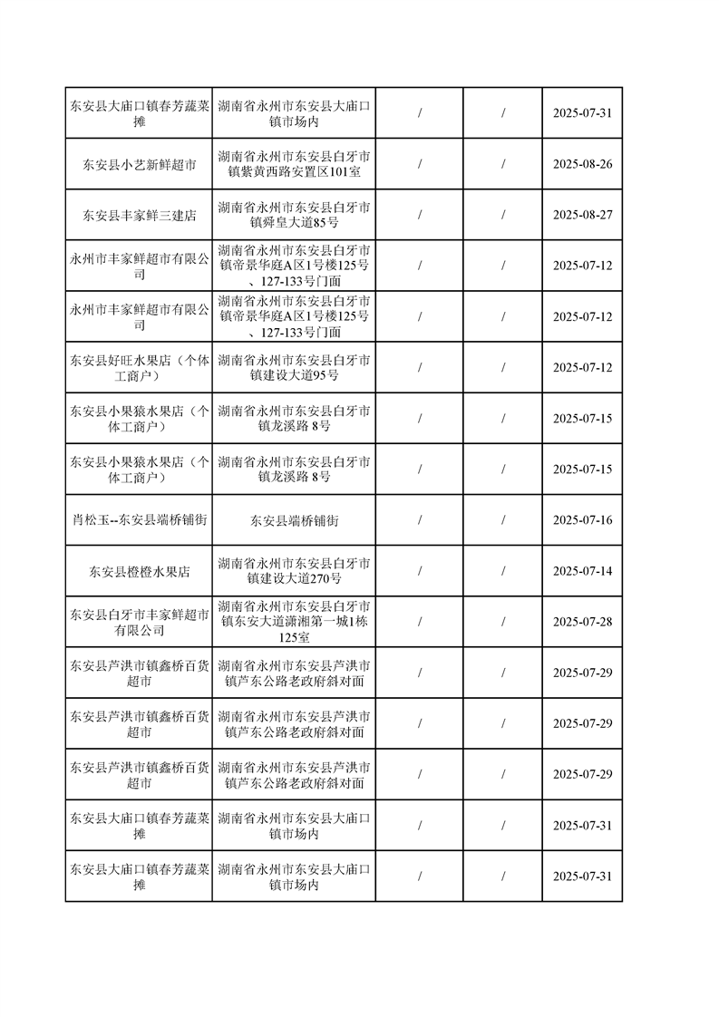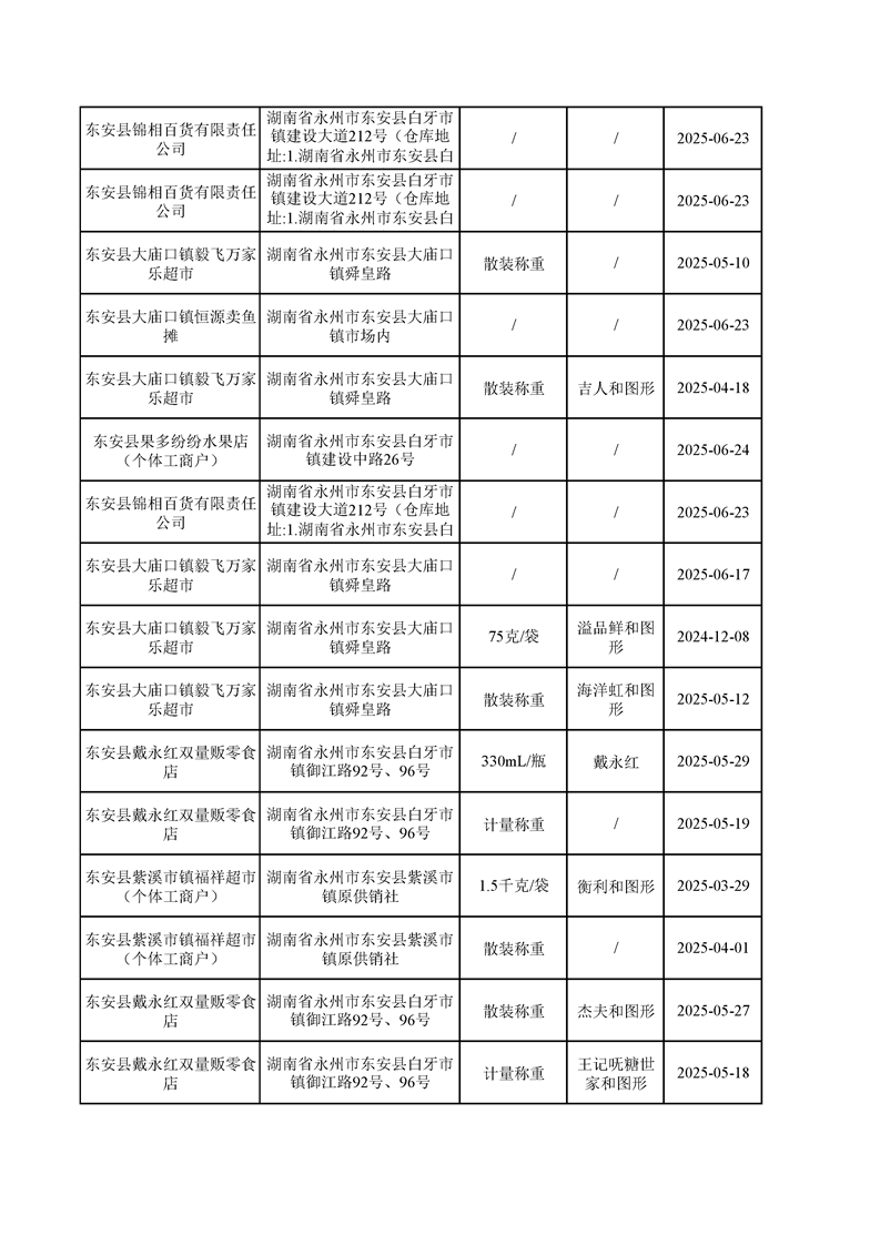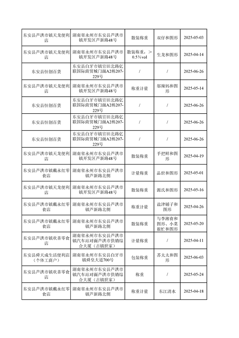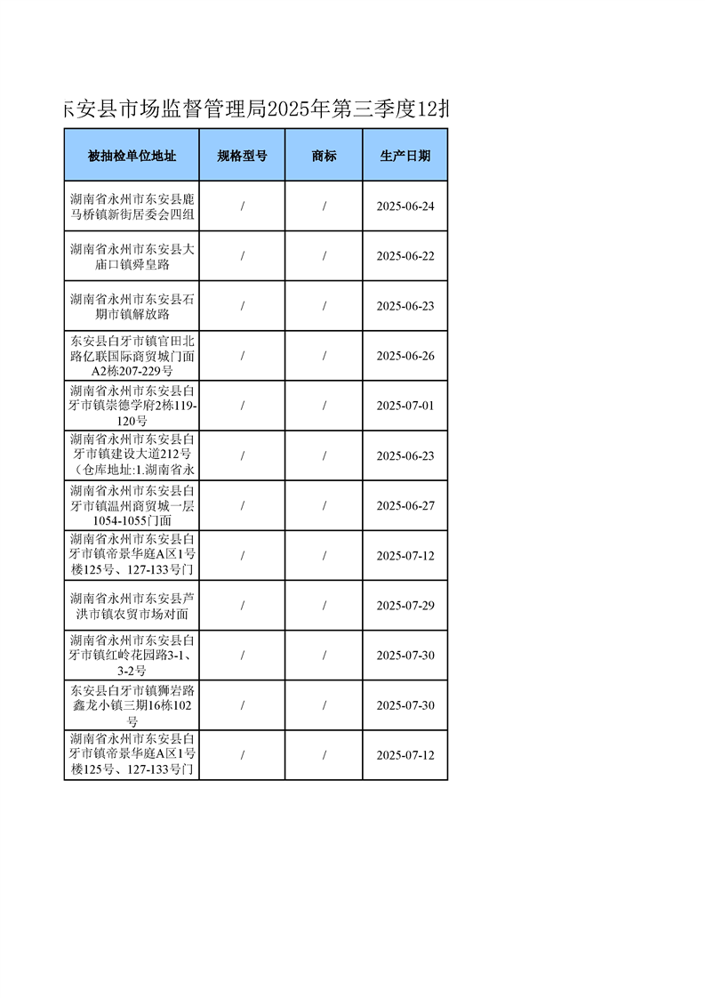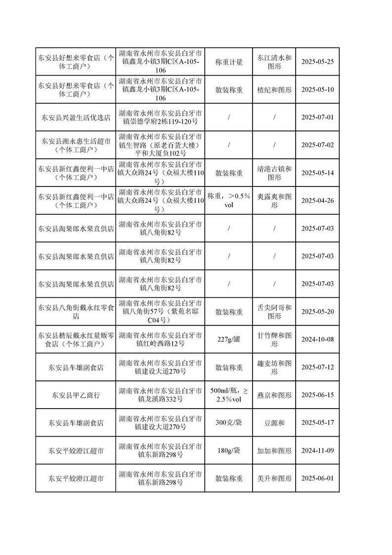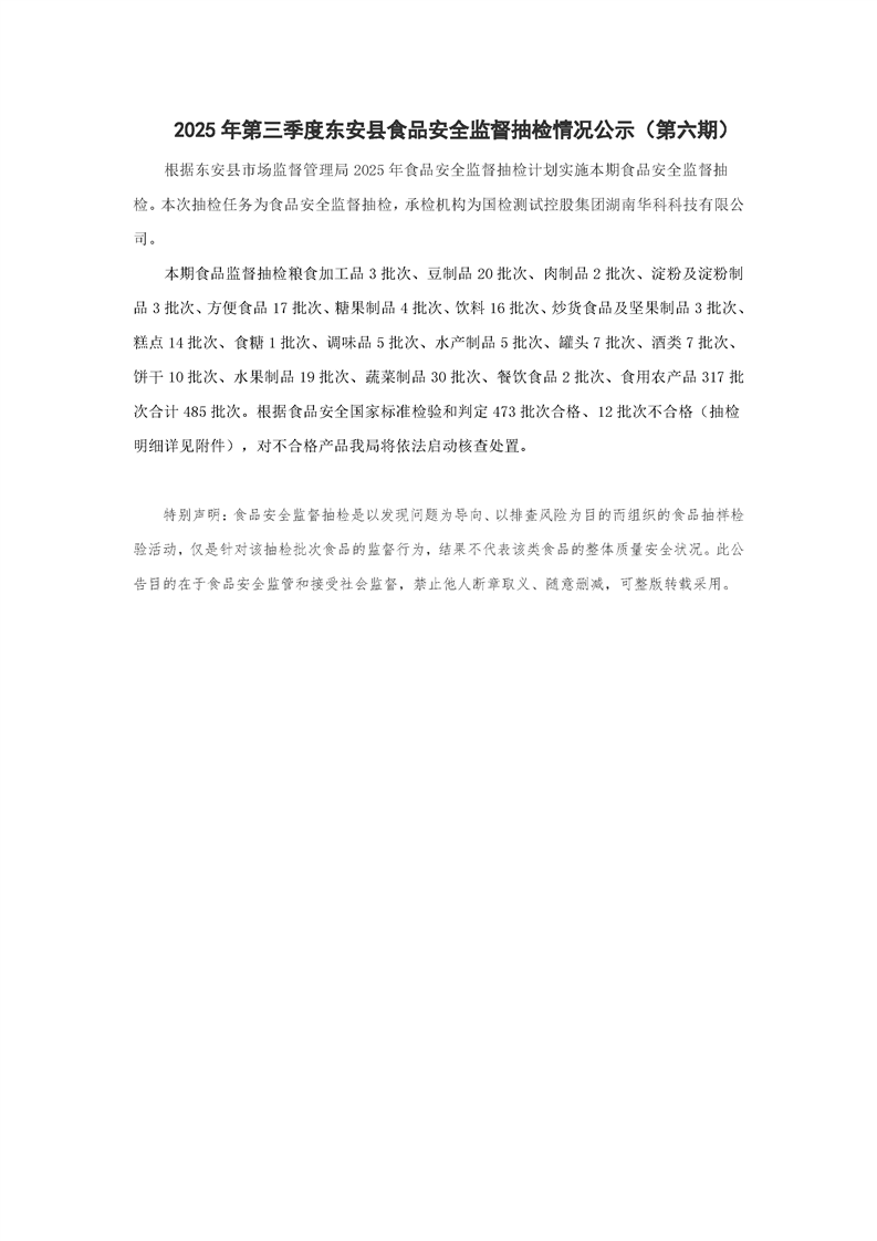 名称: 东安县市场监督管理局关于2025年第三季度东安县食品安全监督抽检情况公示(第六期)