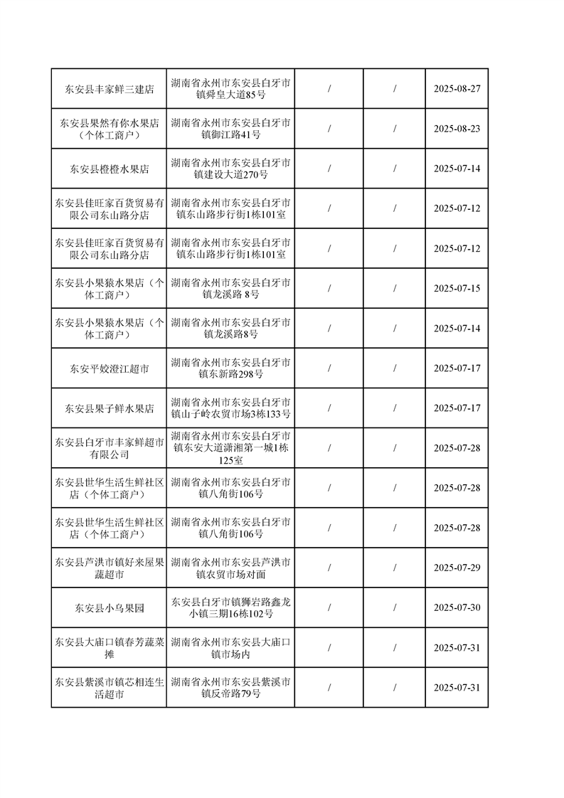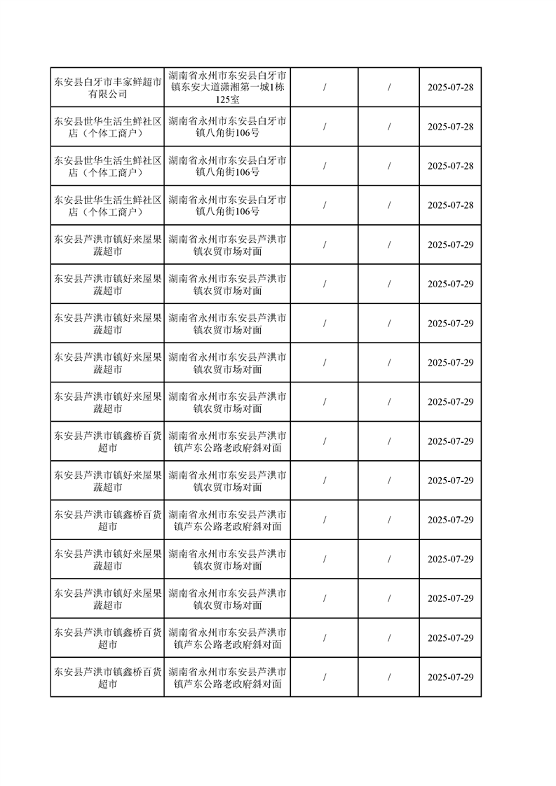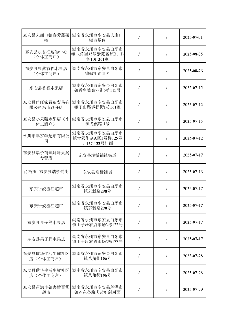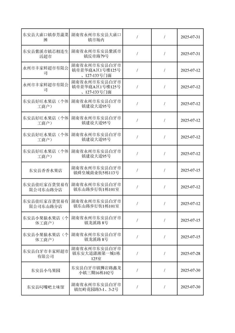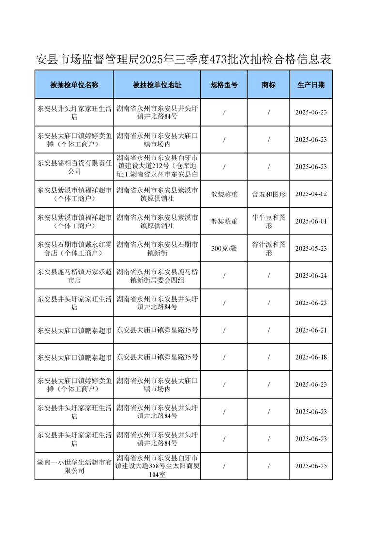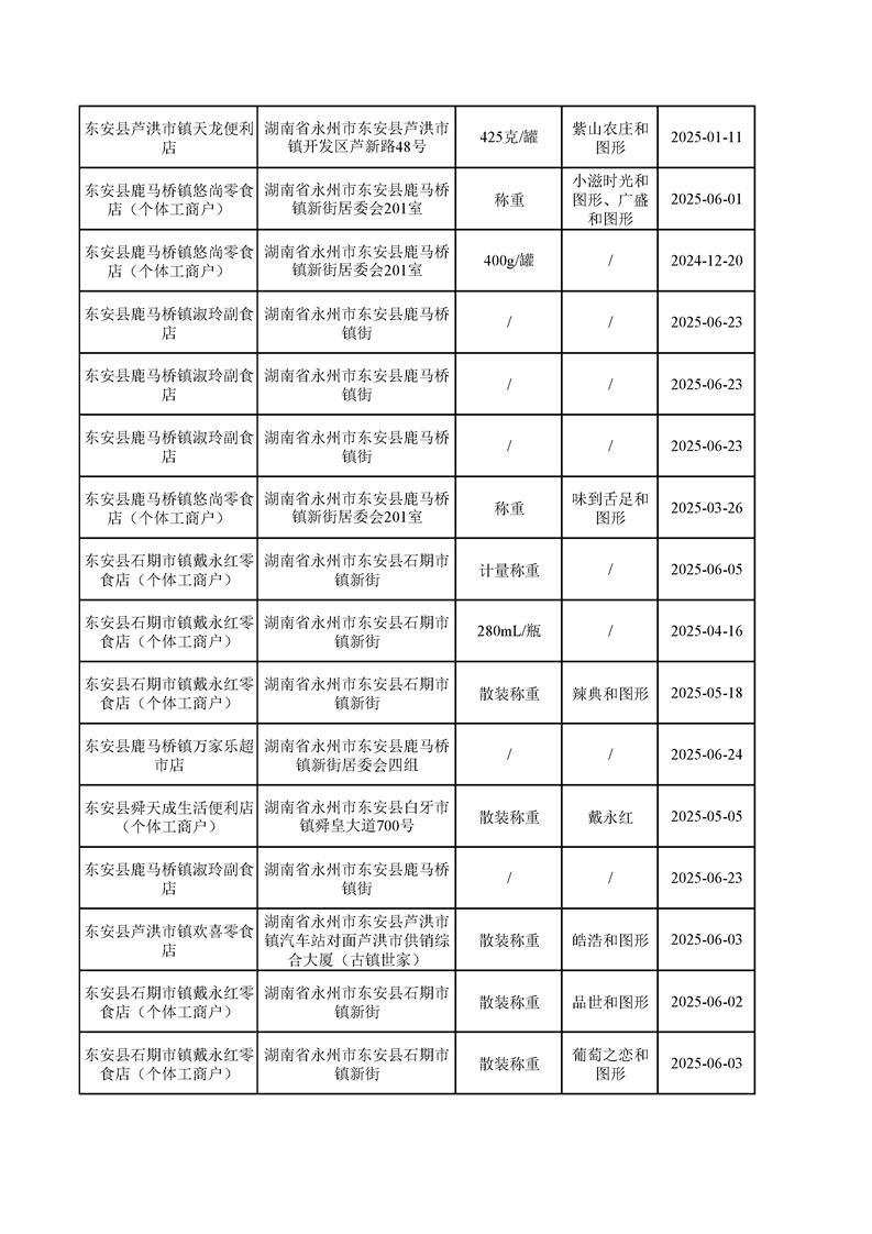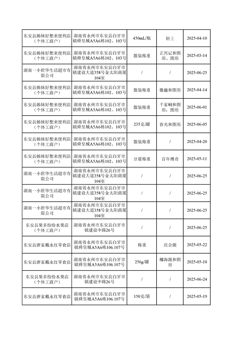 名称: 东安县市场监督管理局关于2025年第三季度东安县食品安全监督抽检情况公示(第六期)