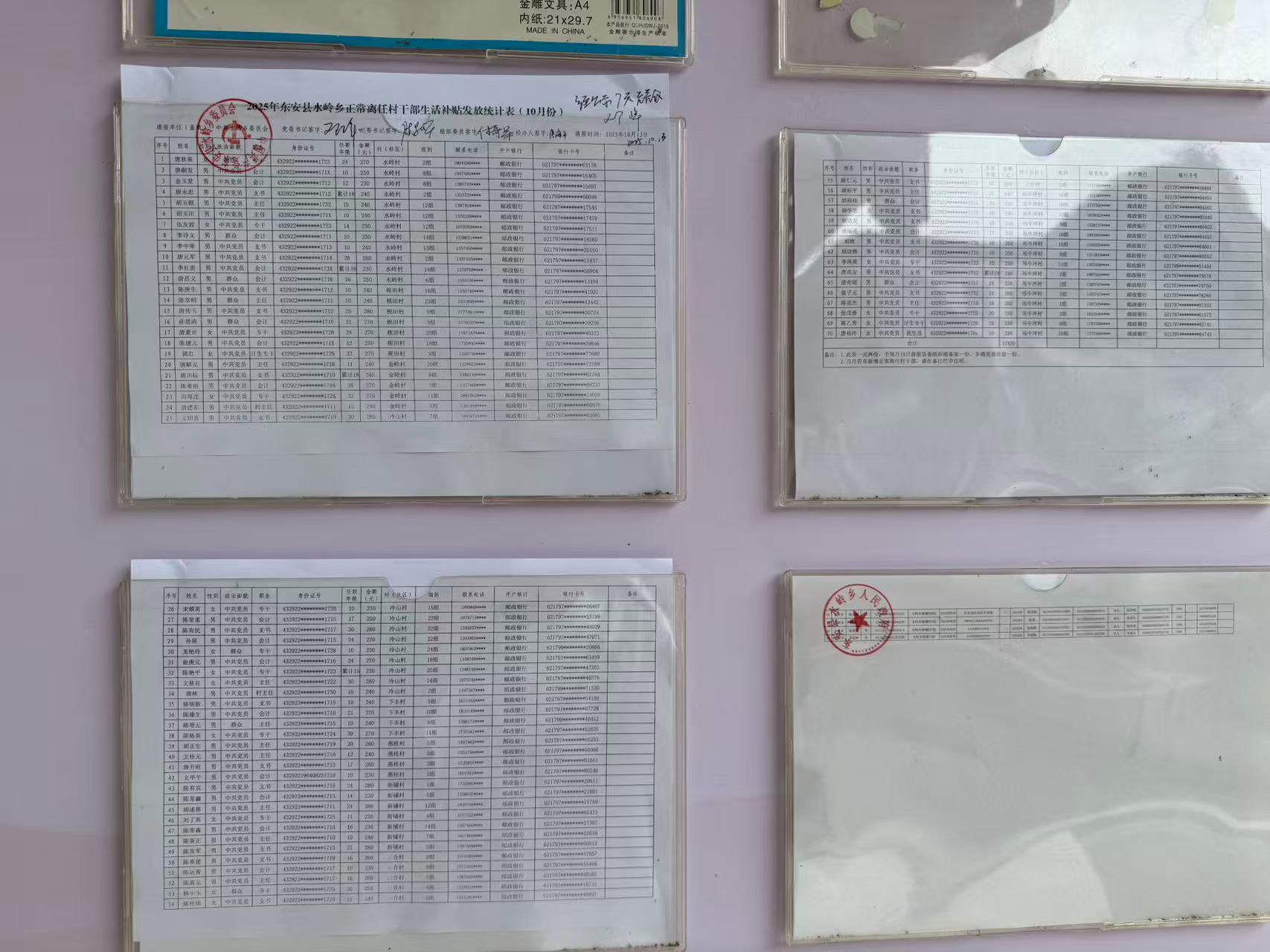 2025年东安县水岭乡正常离任村干部生活补贴发放统计表(10月份)
