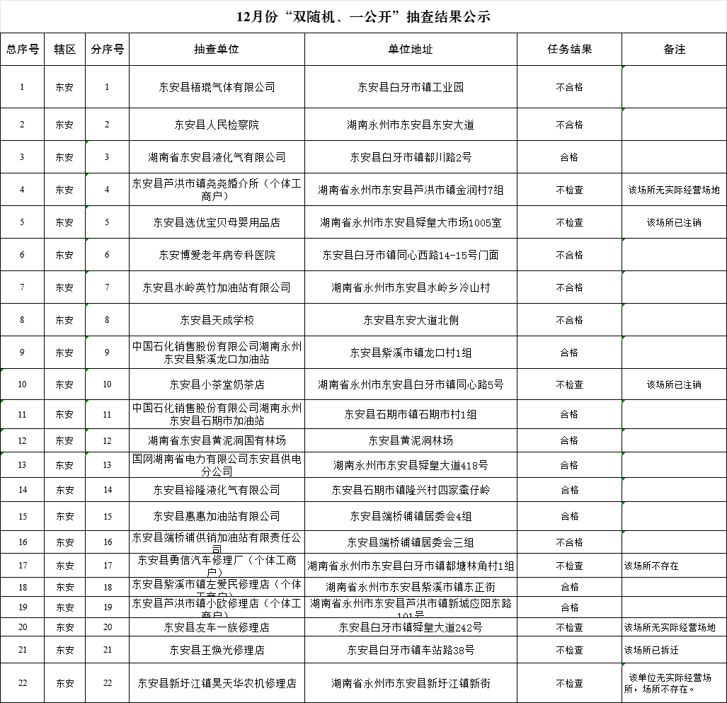 2025年12月份“双随机、一公开”抽查结果公示