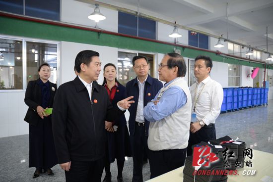 张荣梧一行先后察看了广硕集团投资兴建的凯翔鞋业生产车间和扩建工地,参观了凯翔鞋业公司附近的公租房和“135”工程标准厂房,并就广硕集团投资东安的项目进行了洽谈。