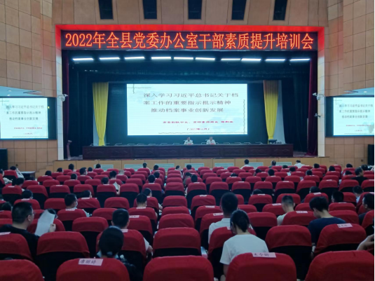 6月30日,全县党委办公室干部素质提升培训会召开,市委副秘书长、市档案局局长蒋刚生应邀赴会宣讲培训档案管理工作。县委常委、县委办主任匡俊杰出席培训会,全县170余名党办干部参加培训。