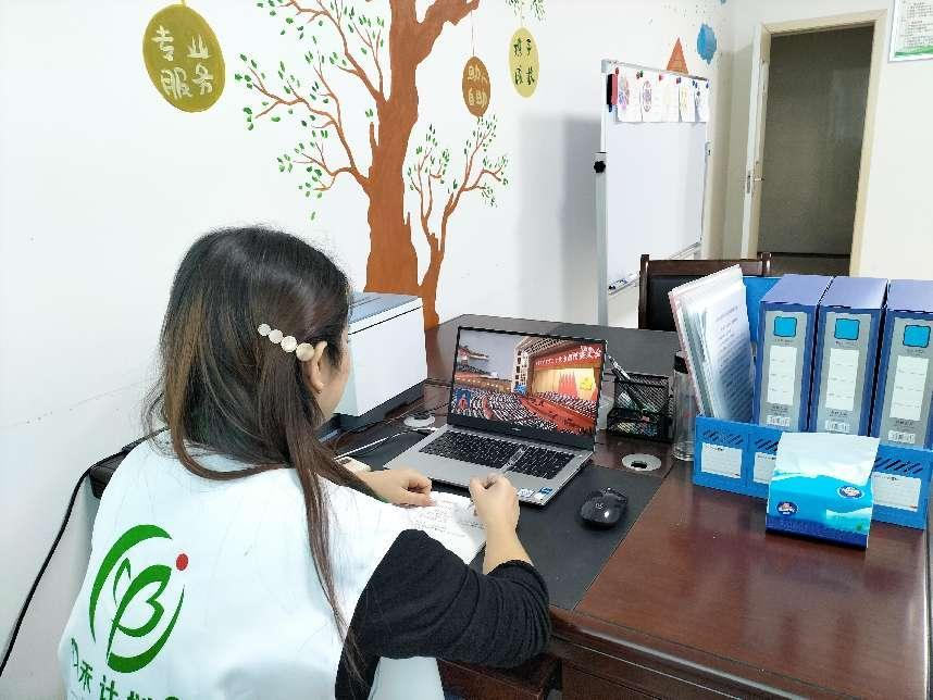 新湖南客户端10月18日讯(通讯员 蒋瑞兰)在落实防疫要求基础上,麓山枫社会工作服务中心东安社工总站组织30名乡镇社工通过电视、网络收听收看党的二十大开幕会盛况,认真聆听习近平同志在大会上所作的报告。