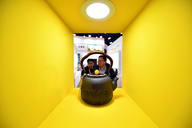 12月5日,民间艺人在第四届山西文化产业博览交易会上展示刻瓷工艺。