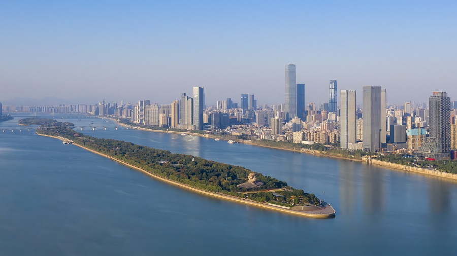 湖南正以“智赋万企”行动为抓手,奋力推动数字技术驱动生产方式和企业形态根本性变革,更好推动经济社会高质量发展。图为碧水蓝天映衬下的湘江两岸。