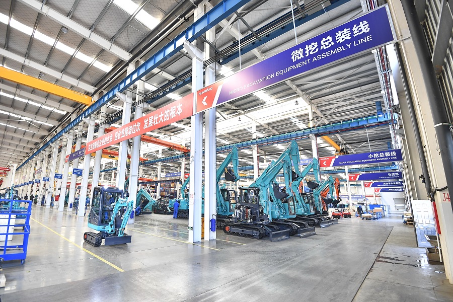 在中联智慧产业城,通过智能排产、工业 AI、数字孪生等“指挥调度”,每6分钟可下线一台挖掘机,关键设备数控化率达100%、综合自动化率达85%、订单完成周期缩短35%。