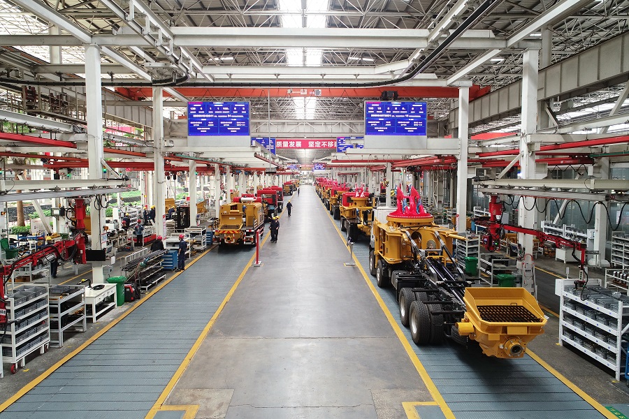 山河智能旋挖总装线车间,自动化、智能化水平不断提升。