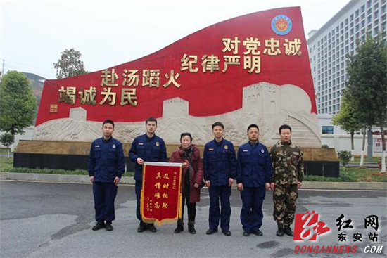 红网时刻2月25日讯(通讯员 东消)2月25日,家住东安县建设大道的蒋晓明老人专程来到消防大队,送上“及时相助,真情难忘”的锦旗,并与在队指战员合影留念。