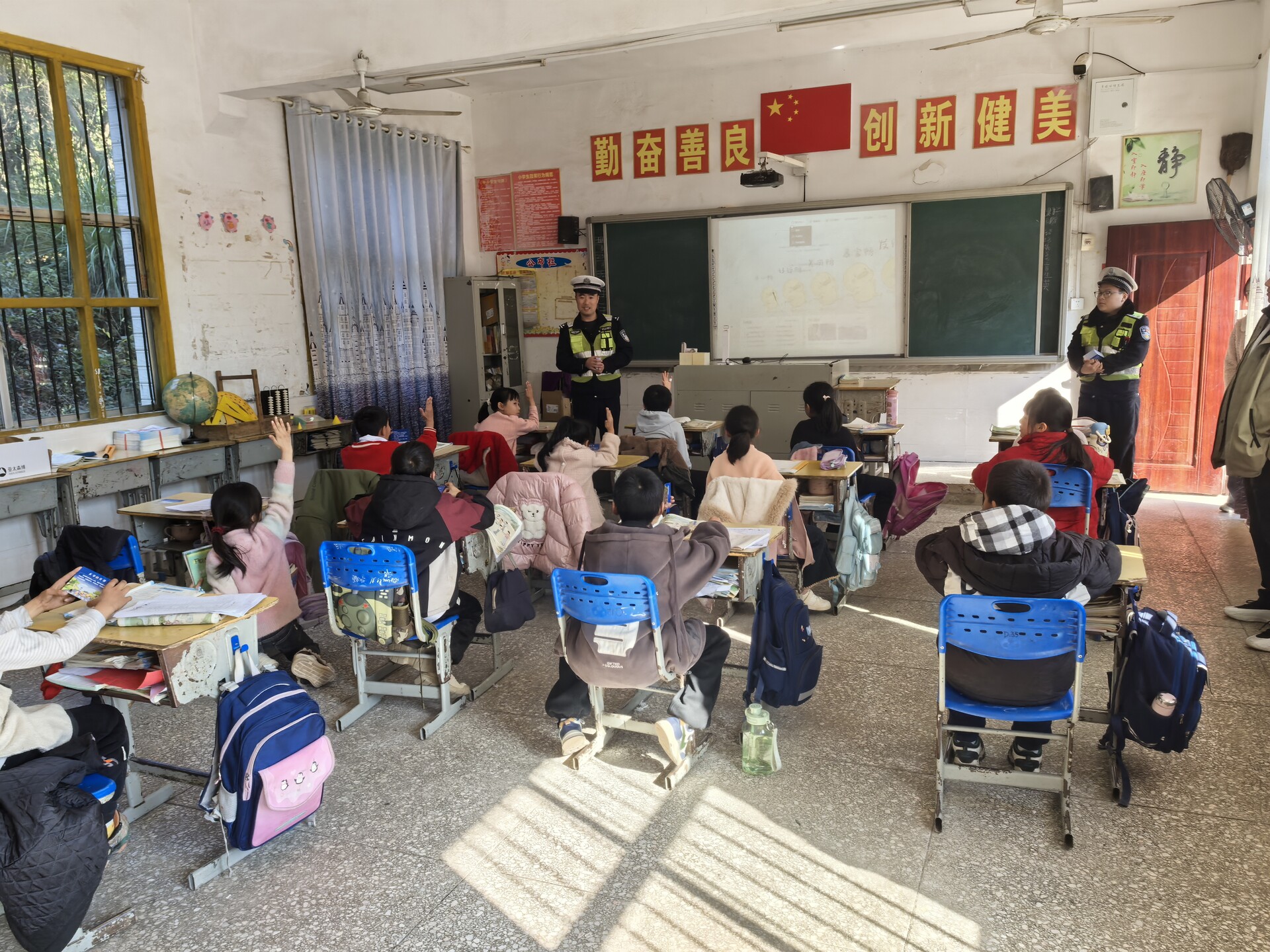 在大庙口中心小学的课堂上,交警通过播放动画短片、情景模拟等方式,向学生讲解步行、乘车、骑行等场景的注意事项。针对寒假期间走亲访友、外出游玩增多的特点,重点强调“一盔一带”、不闯红灯、远离车辆盲区等安全常识。活动中,交警还邀请学生参与“安全知识问答”“交通标志识别”等互动游戏,现场气氛热烈。
