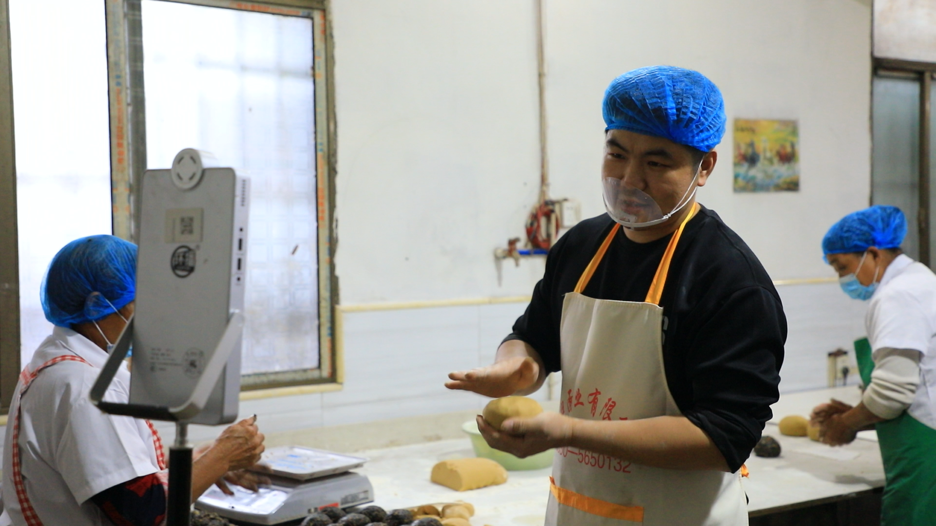 如今,老手艺遇上了年轻人,大盛月饼焕发出了新活力。2017年回乡的刘增运,接过父辈技艺后便思考如何让“土月饼”走得更远。他设计出竹篮礼盒、复古牛皮纸盒等包装,将“老味道”“团圆”等民俗元素融入外观,同时还搭建起了直播间,通过实时展示手工制作细节,努力扩展线上销售渠道。