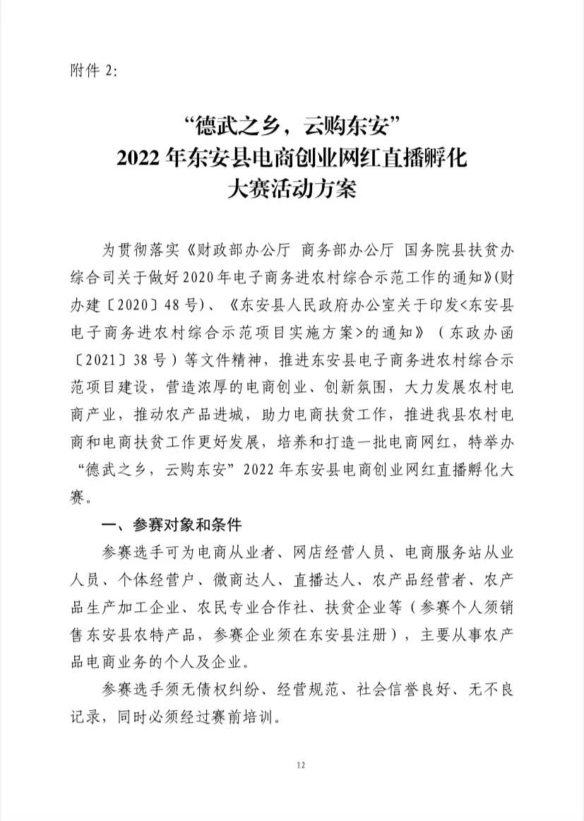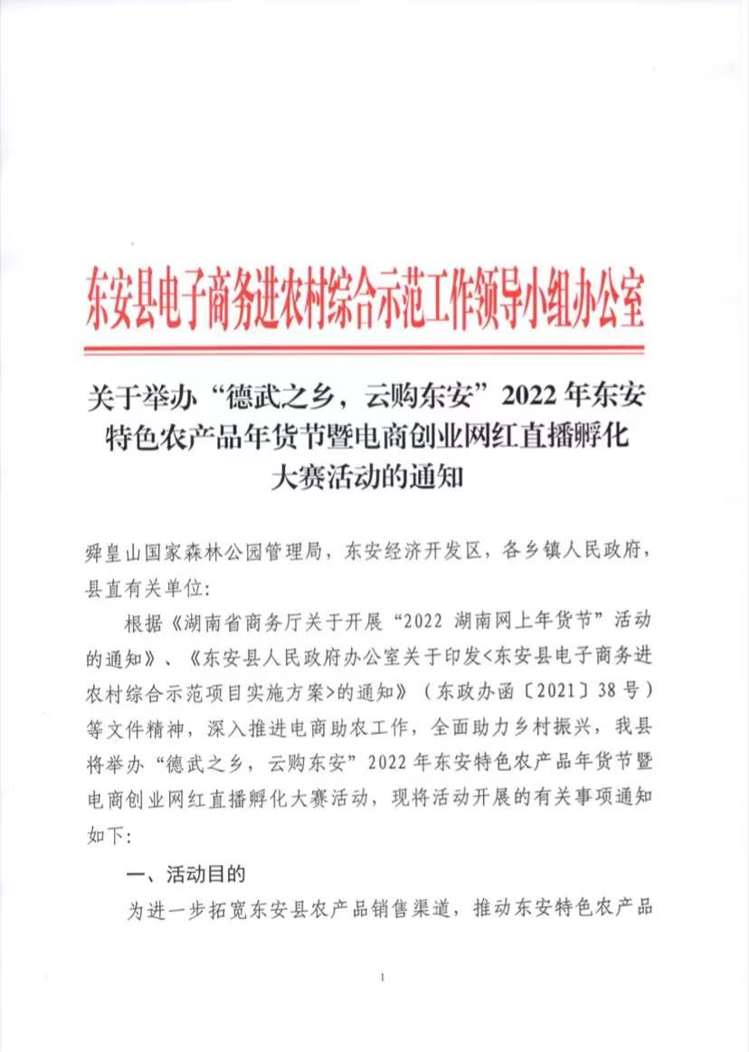 关于举办“德武之乡,云购东安”2022年东安特色农产品年货节暨电商创业网红直播孵化大赛活动的通知