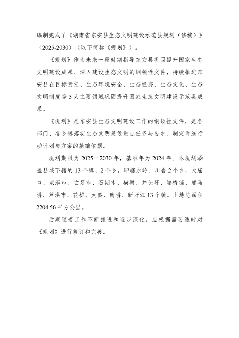 东安县生态文明建设示范县规划修编(2025-2030年)