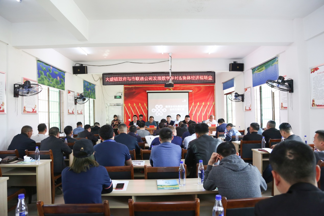 新湖南客户端3月14日讯(通讯员 周钦耀)3月14日,大盛镇政府与永州市联通公司在合作试点--易江村召开现场会议,共同探索集体经济发展“新”模式,精心谋划打造“数字乡村”。会议特邀永州市联通公司副总和东安县农商行信贷部代表出席,大盛镇党委书记在会上作动员讲话,全镇各村第一驻村干部、村支书等参加会议。