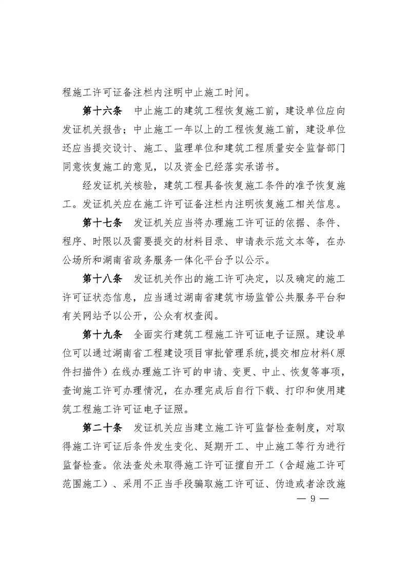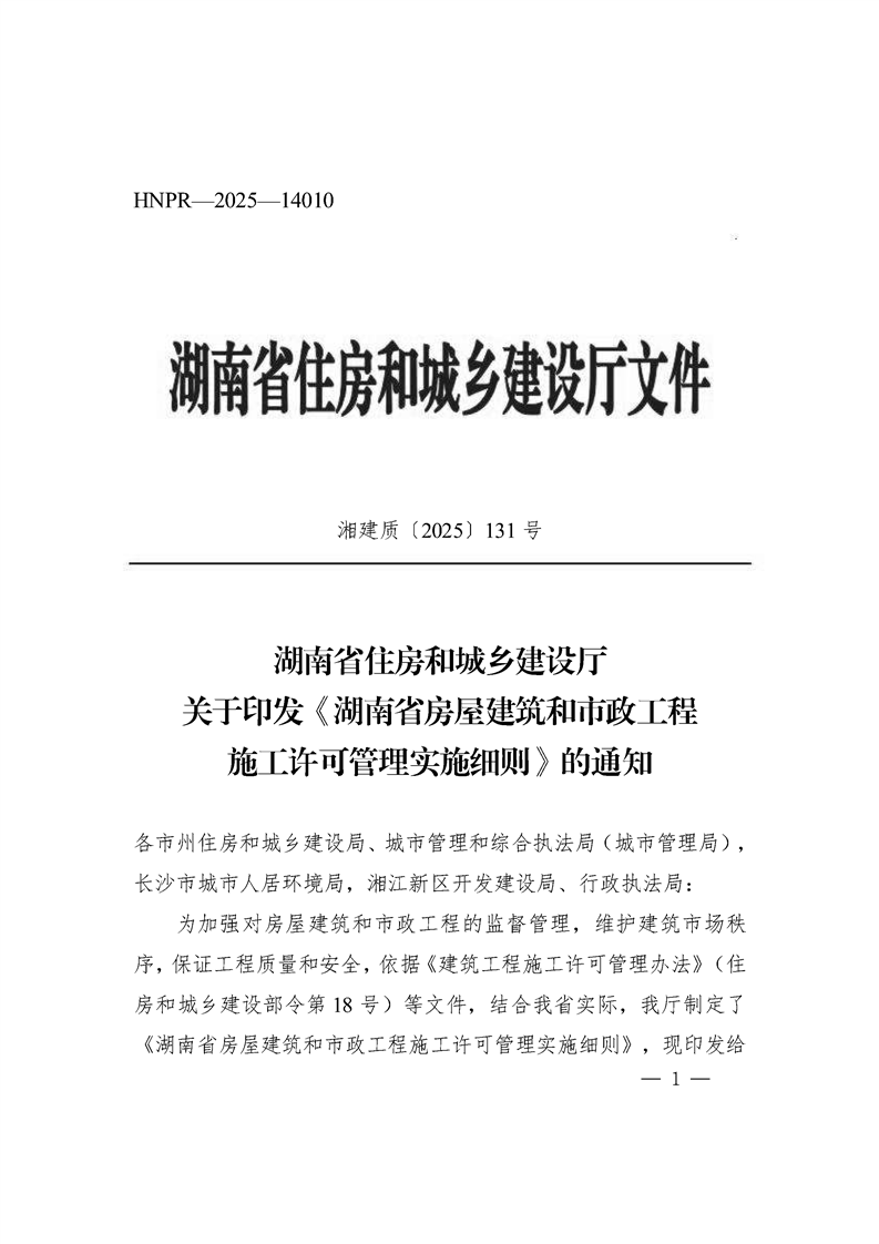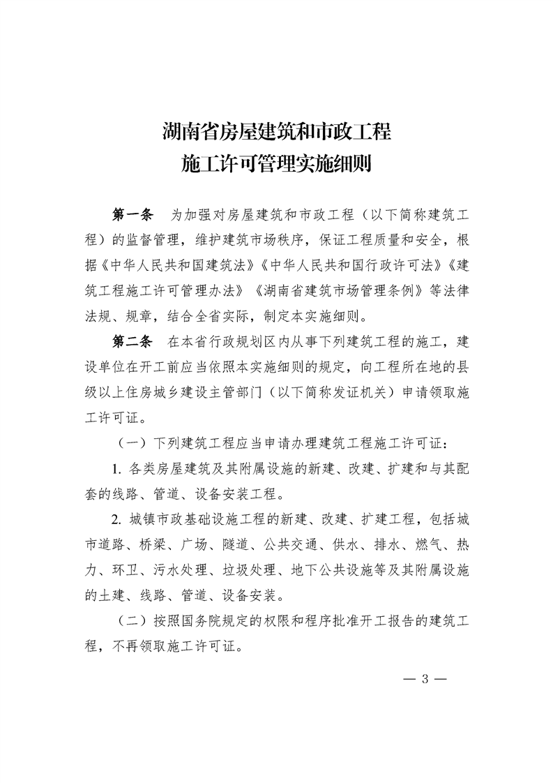 关于印发《湖南省房屋建筑和市政工程施工许可管理实施细则》的通知