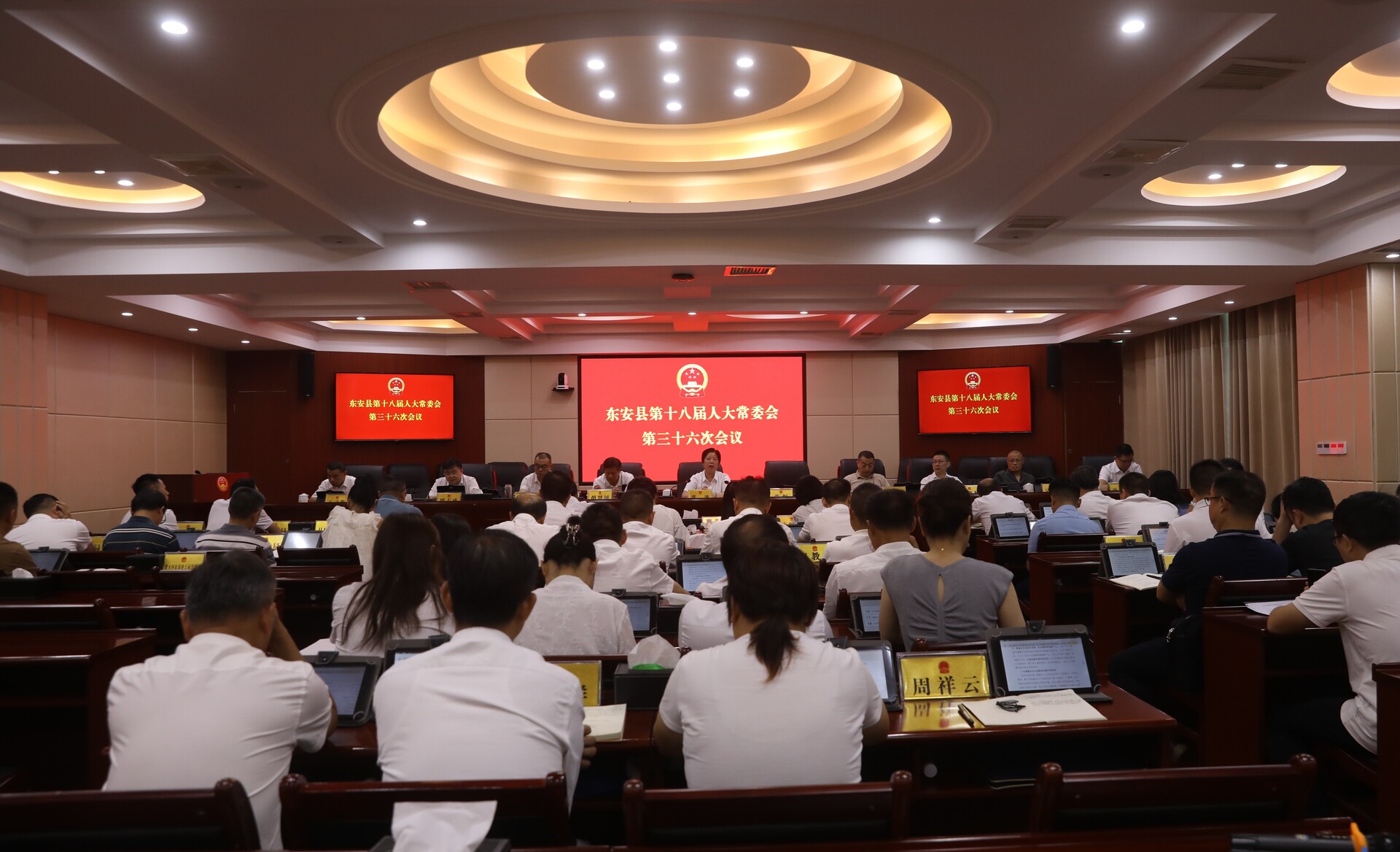 新湖南客户端9月16日讯(通讯员 庾先文)9月16日,东安县第十八届人大常委会第三十六次会议召开。县人大常委会主任张波主持会议,县人大常委会副主任胡慧川、刘劼、廖祝春、魏新林参加会议,县委常委、常务副县长张恒,县委常委、县纪委书记、县监委主任唐青松,副县长周志成应邀列席会议。