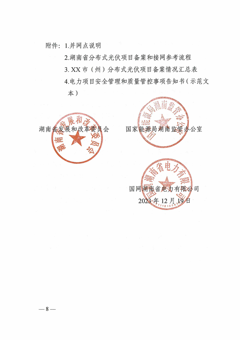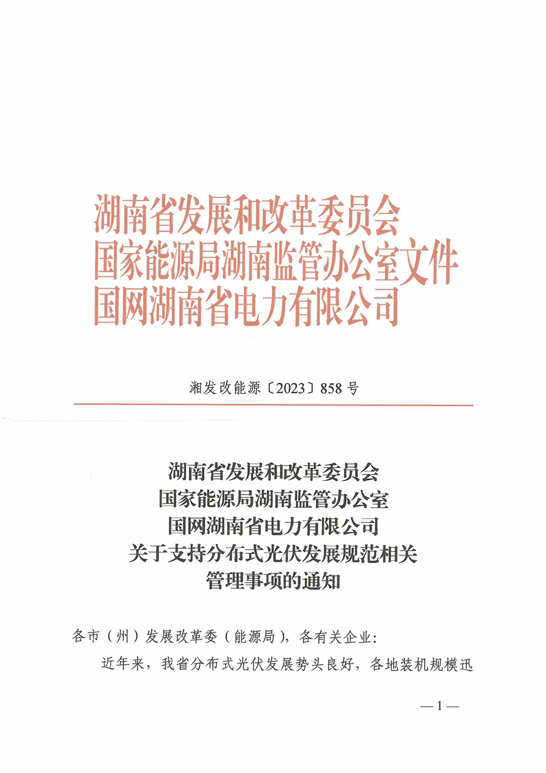湖南省发展和改革委员会国家能源局湖南监管办公室国网湖南省电力有限公司关于支持分布式光伏发展规范相关管理事项的通知