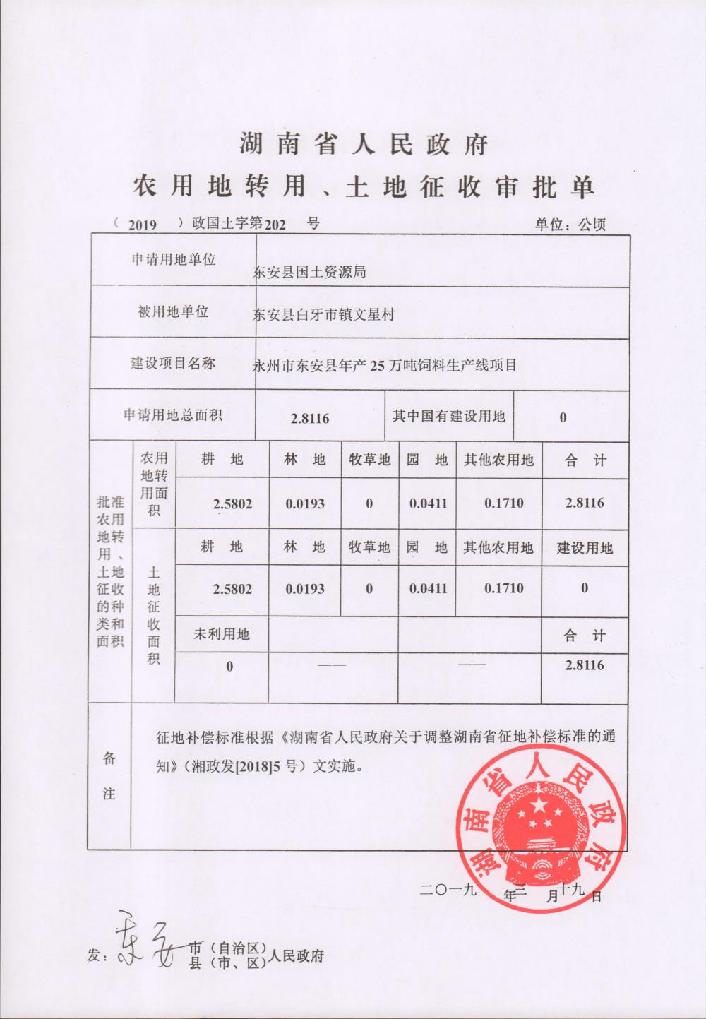 湖南省人民政府农用地转用、土地征收审批单2019(202)号