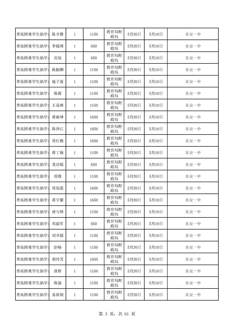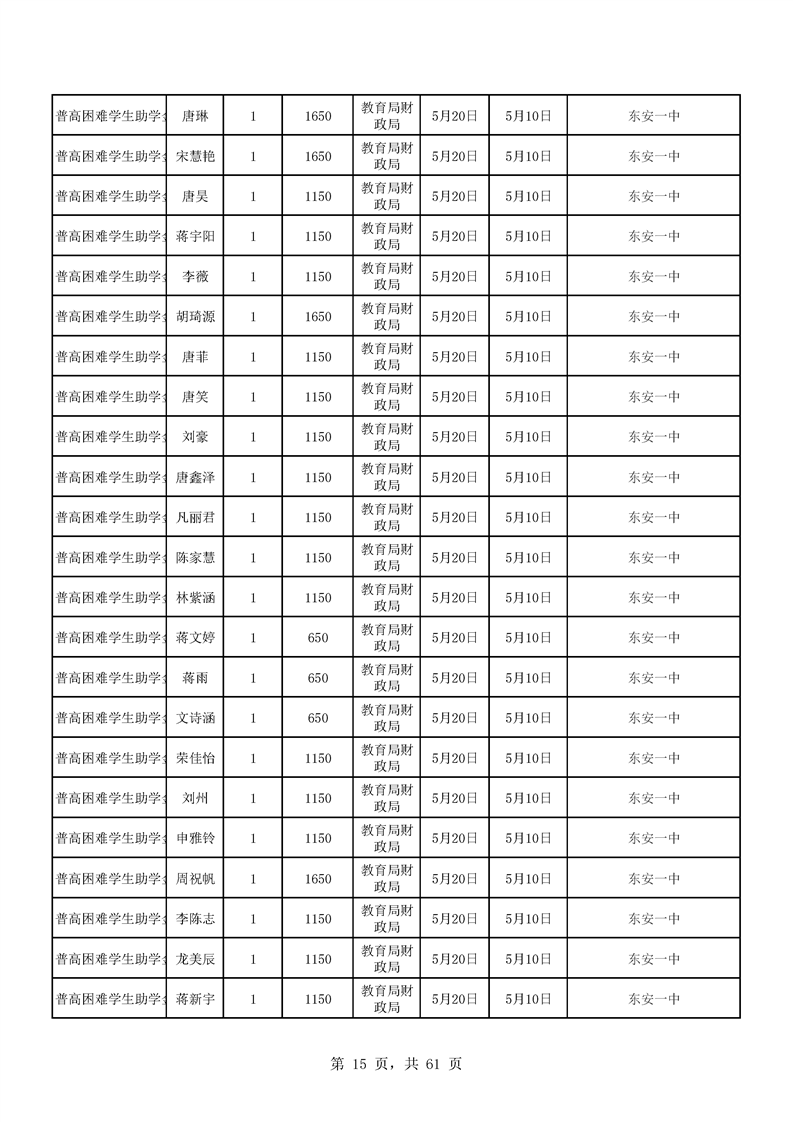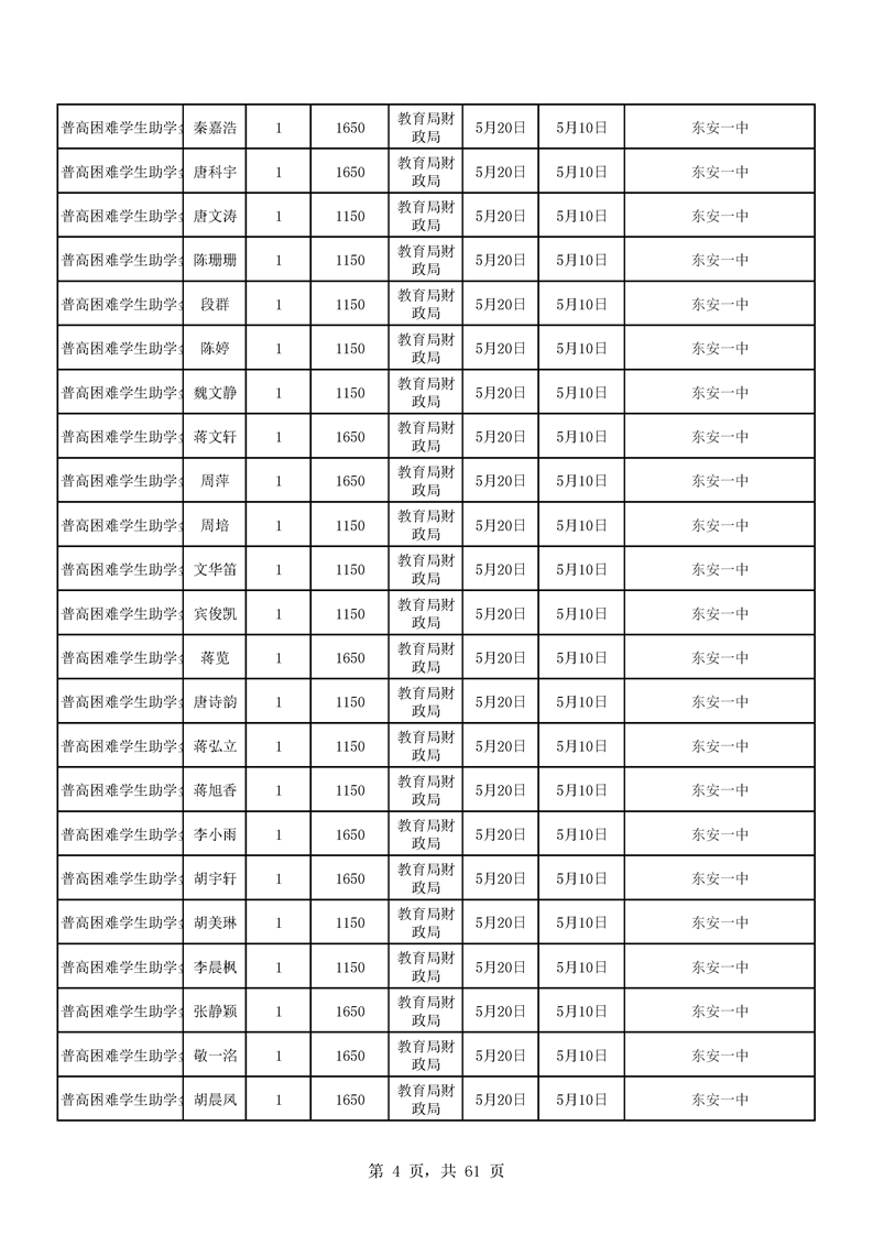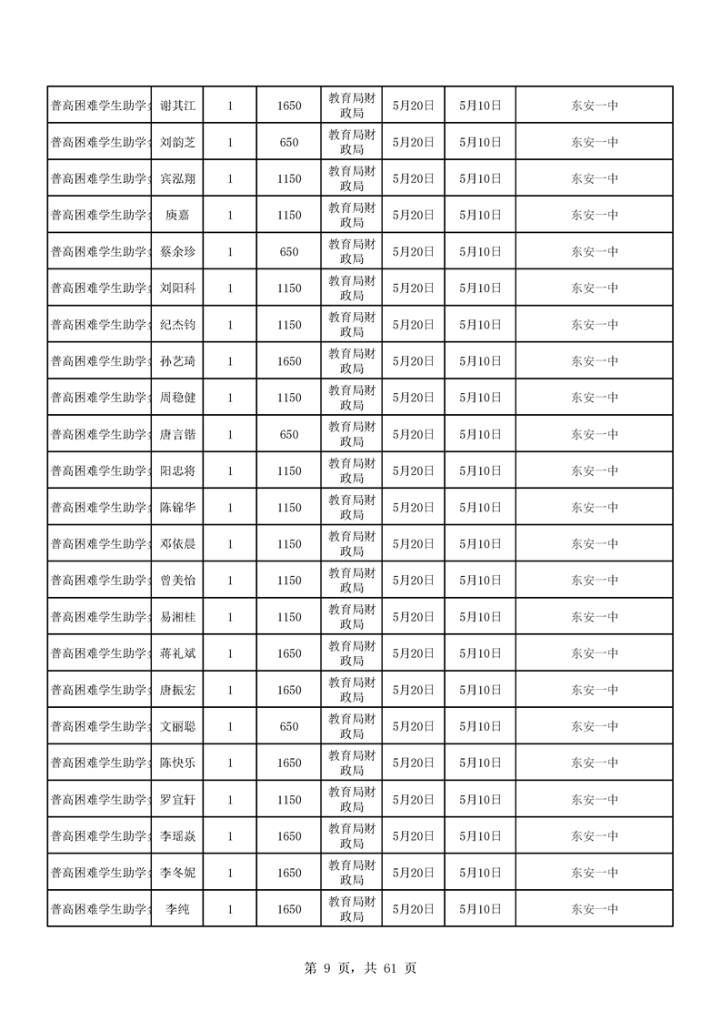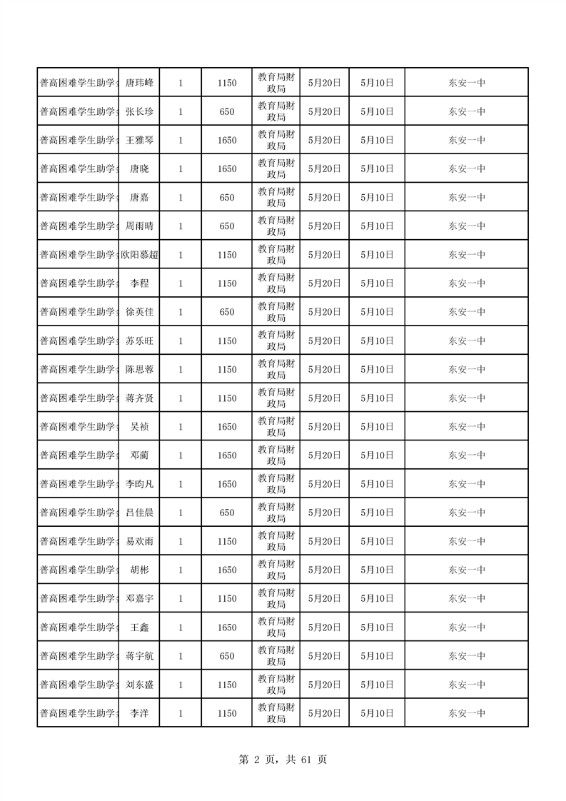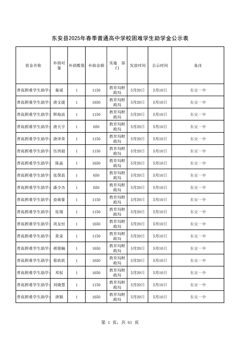 名称: 东安县2025年春季普通高中学校困难学生助学金公示表