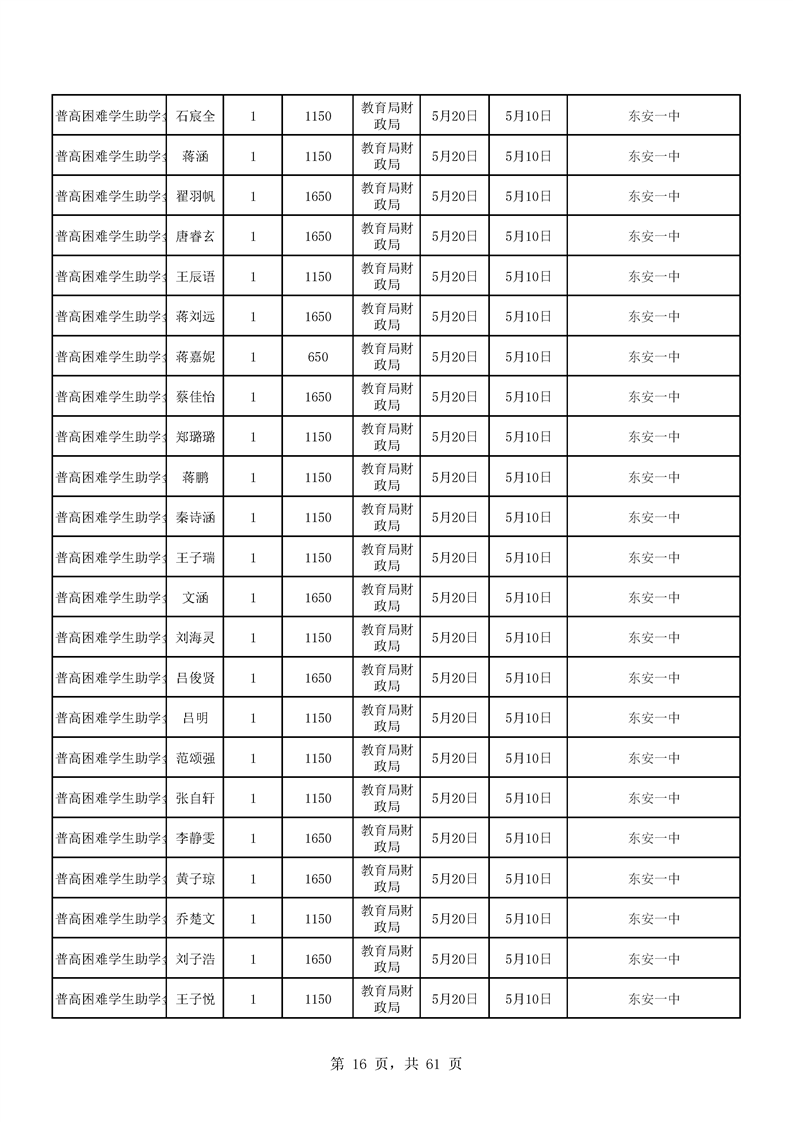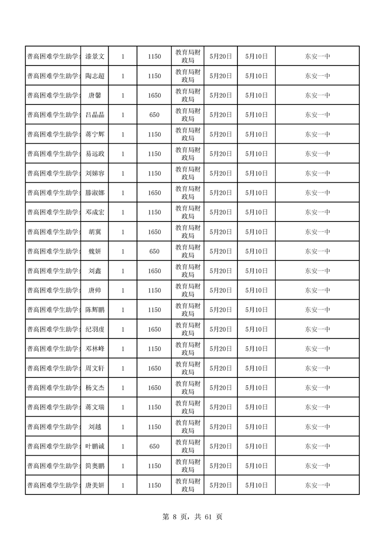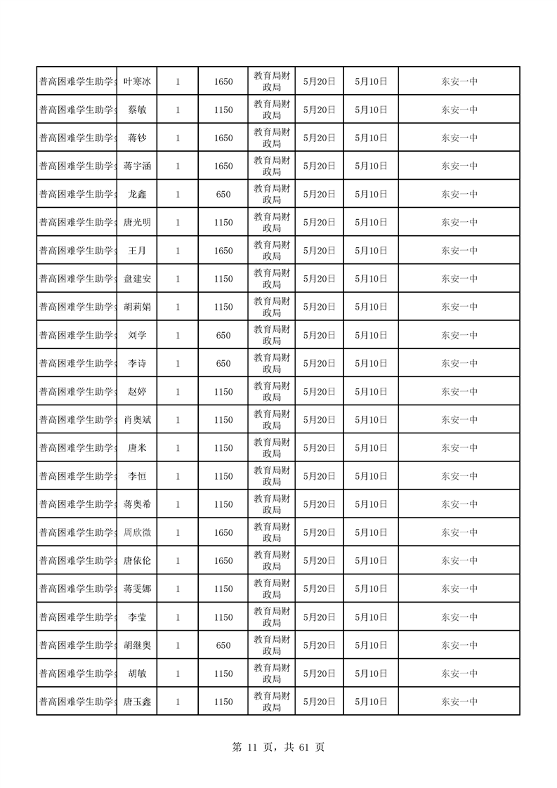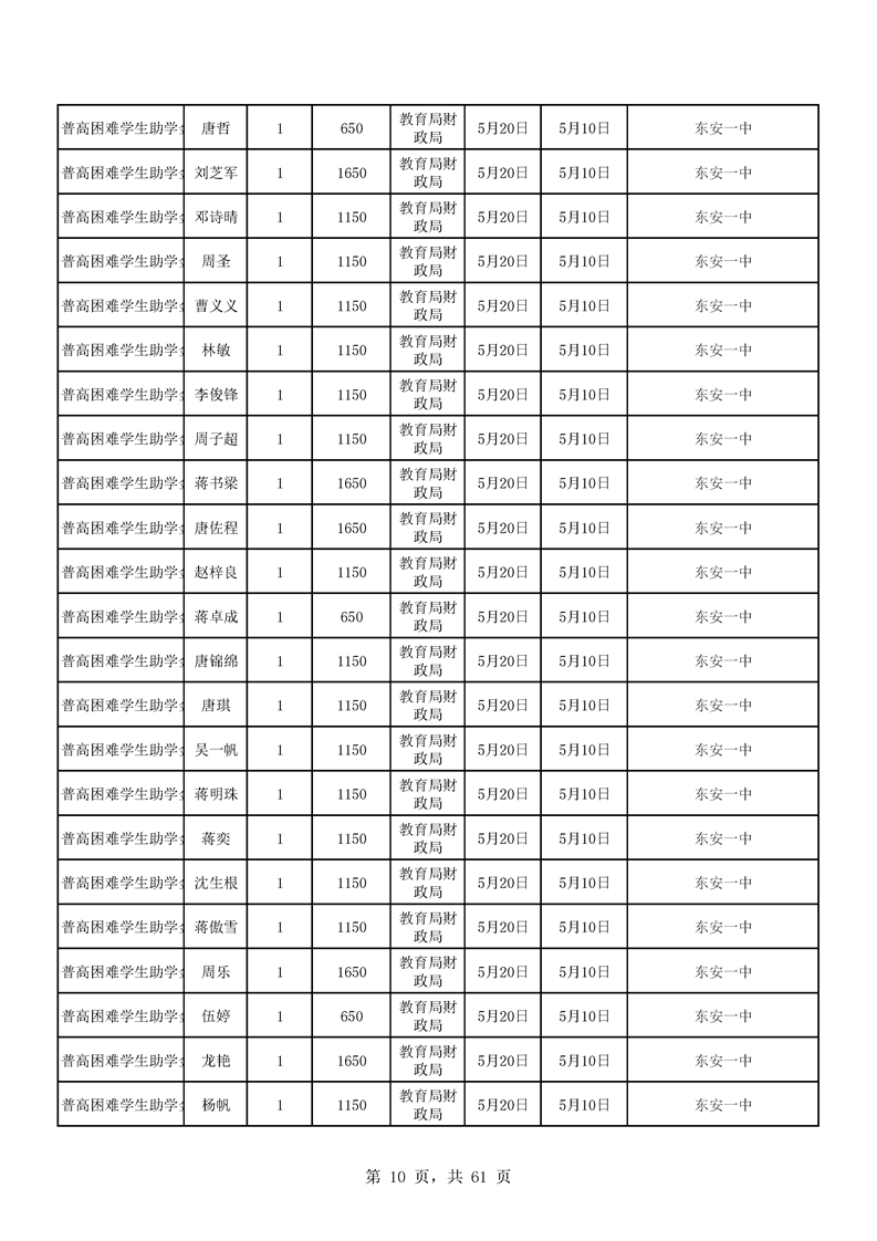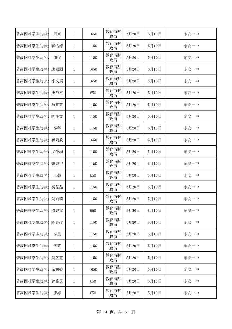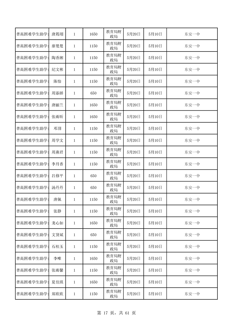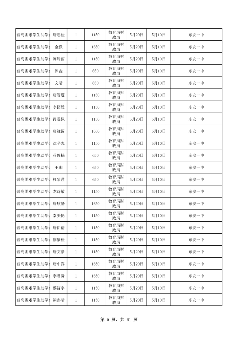 名称: 东安县2025年春季普通高中学校困难学生助学金公示表