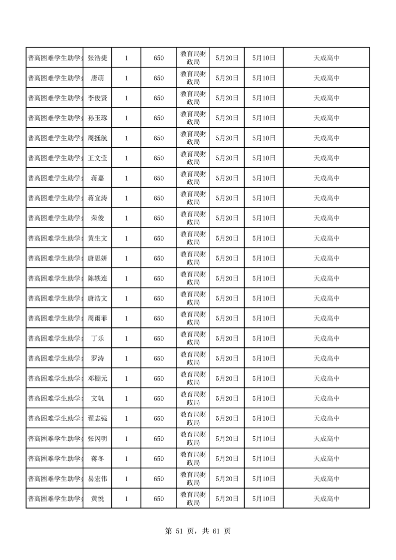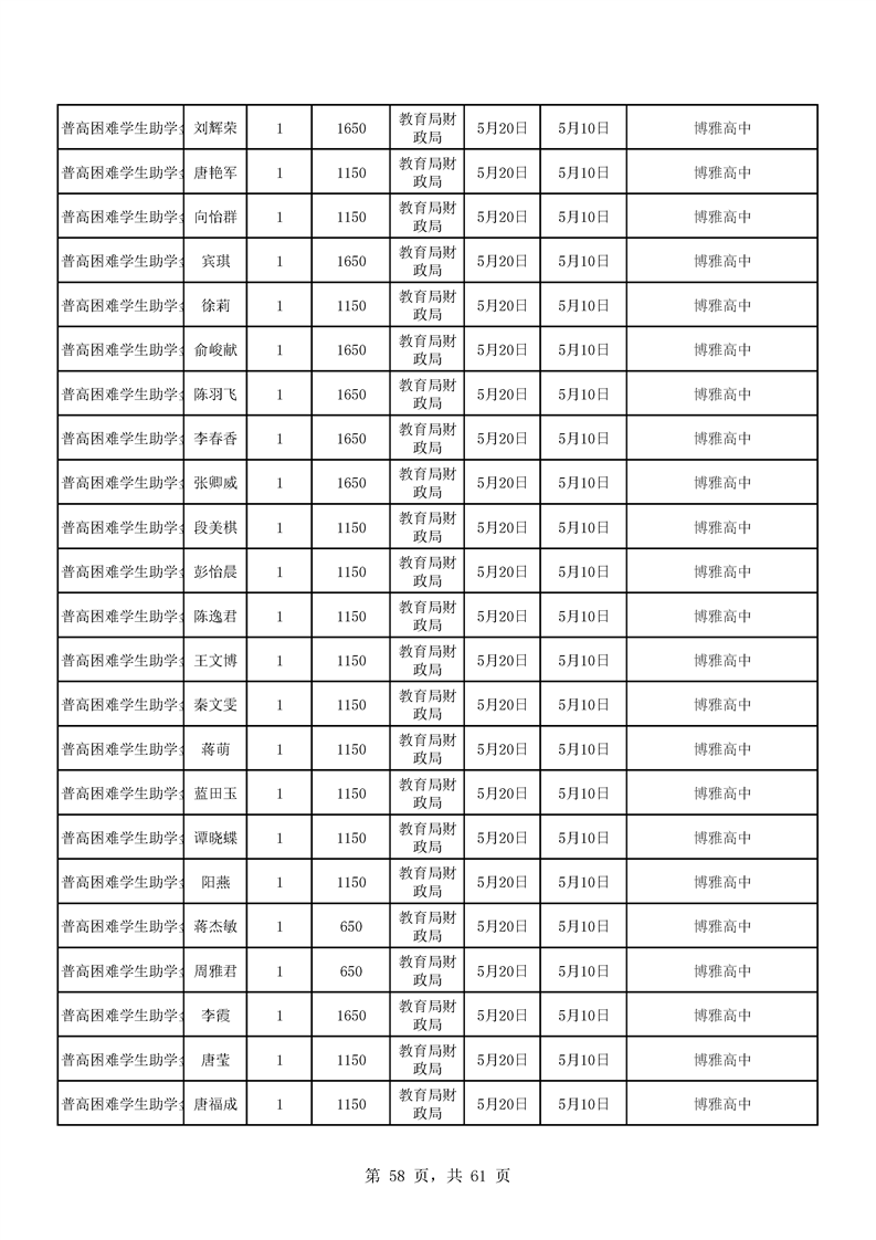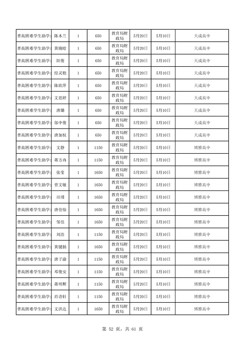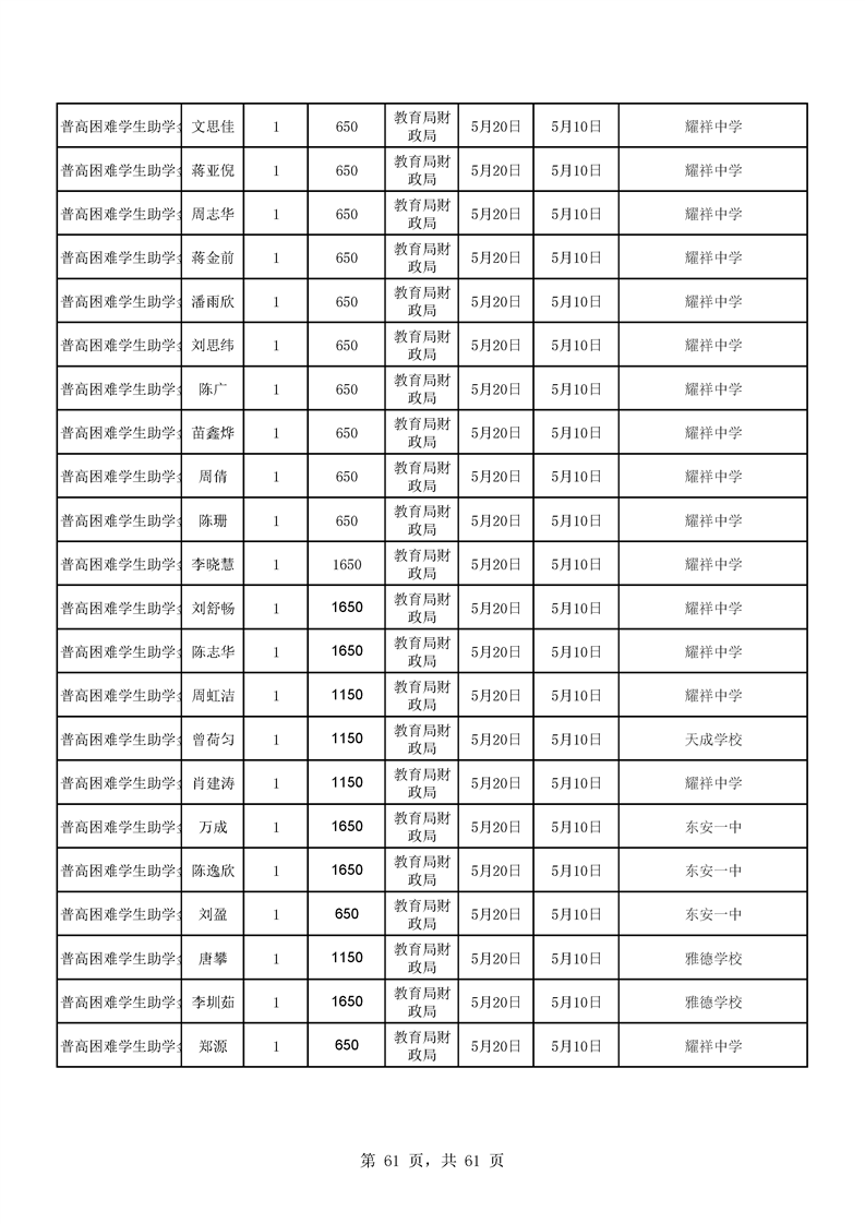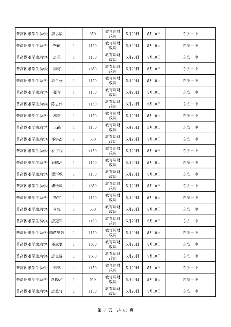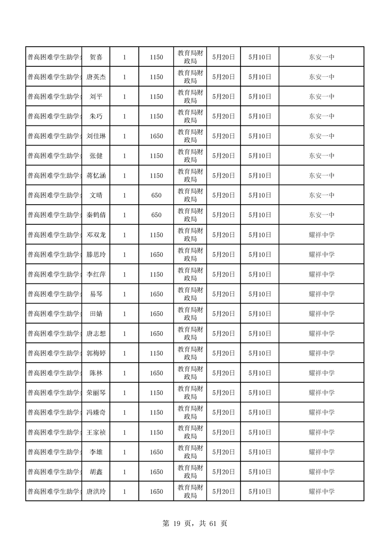 名称: 东安县2025年春季普通高中学校困难学生助学金公示表