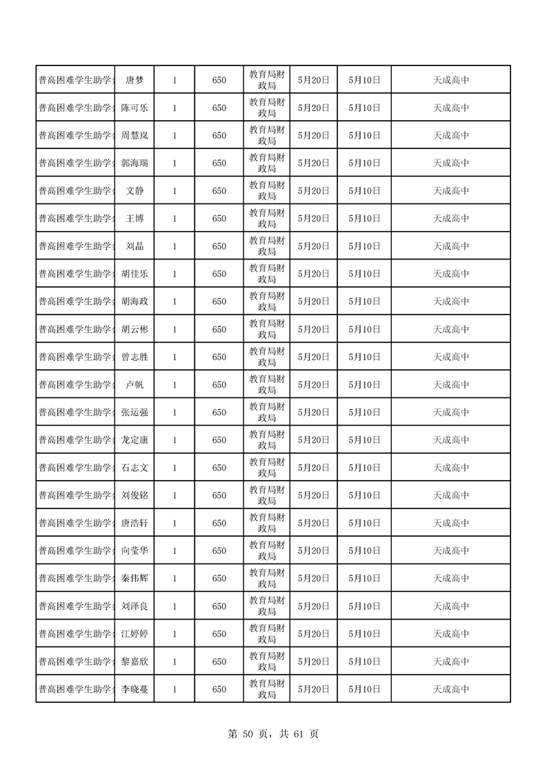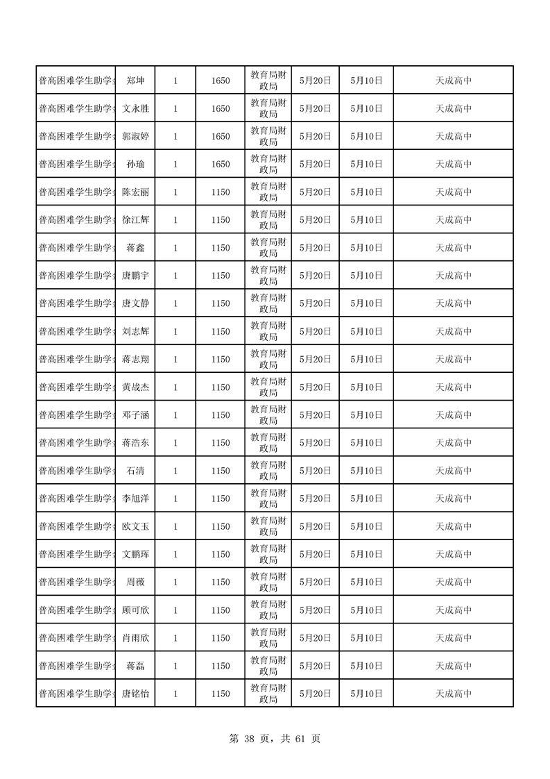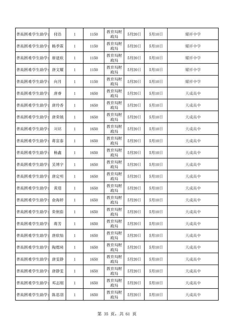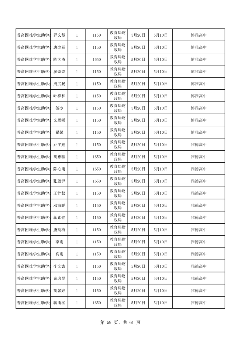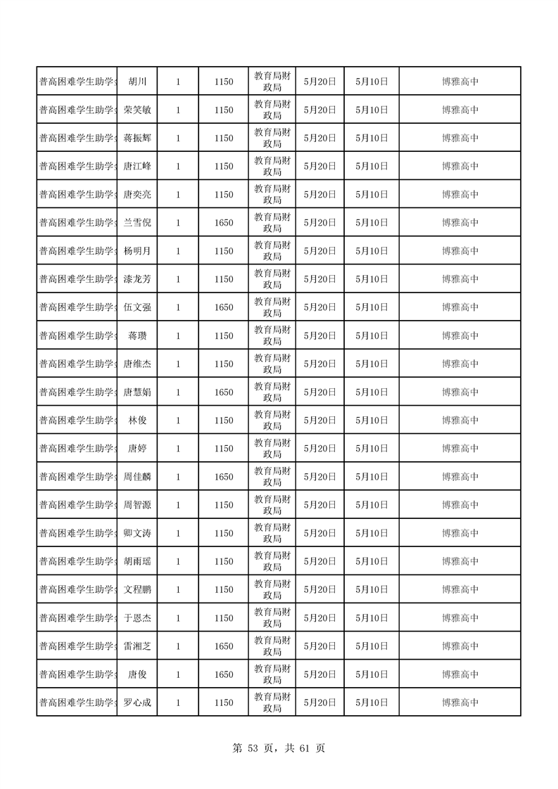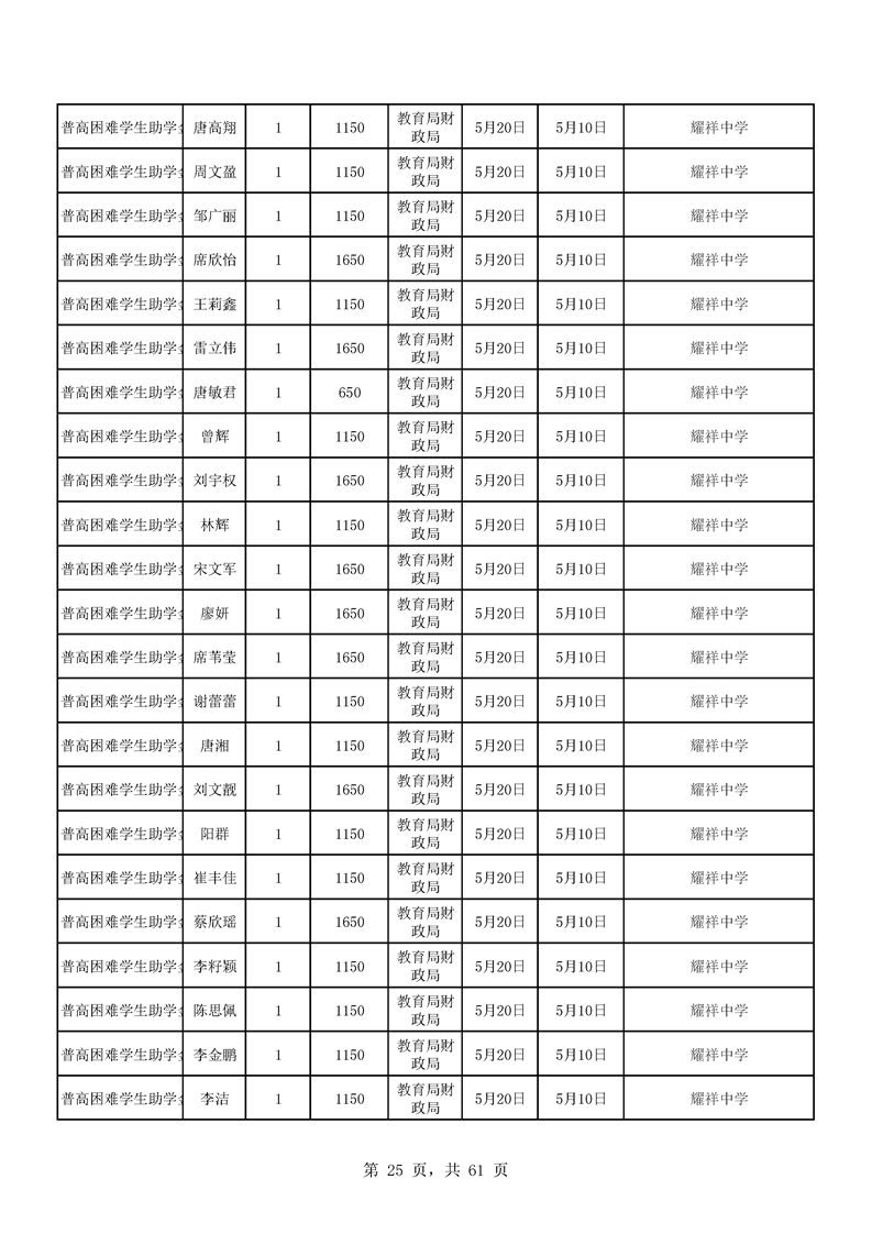 名称: 东安县2025年春季普通高中学校困难学生助学金公示表