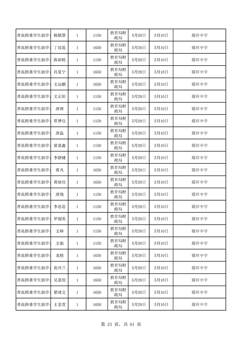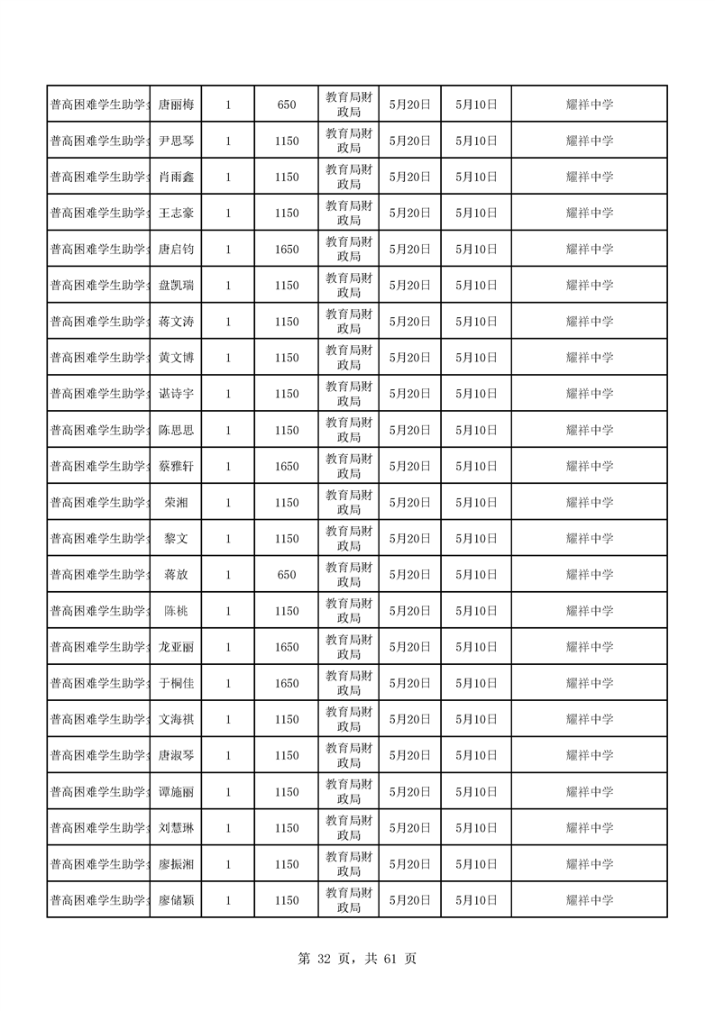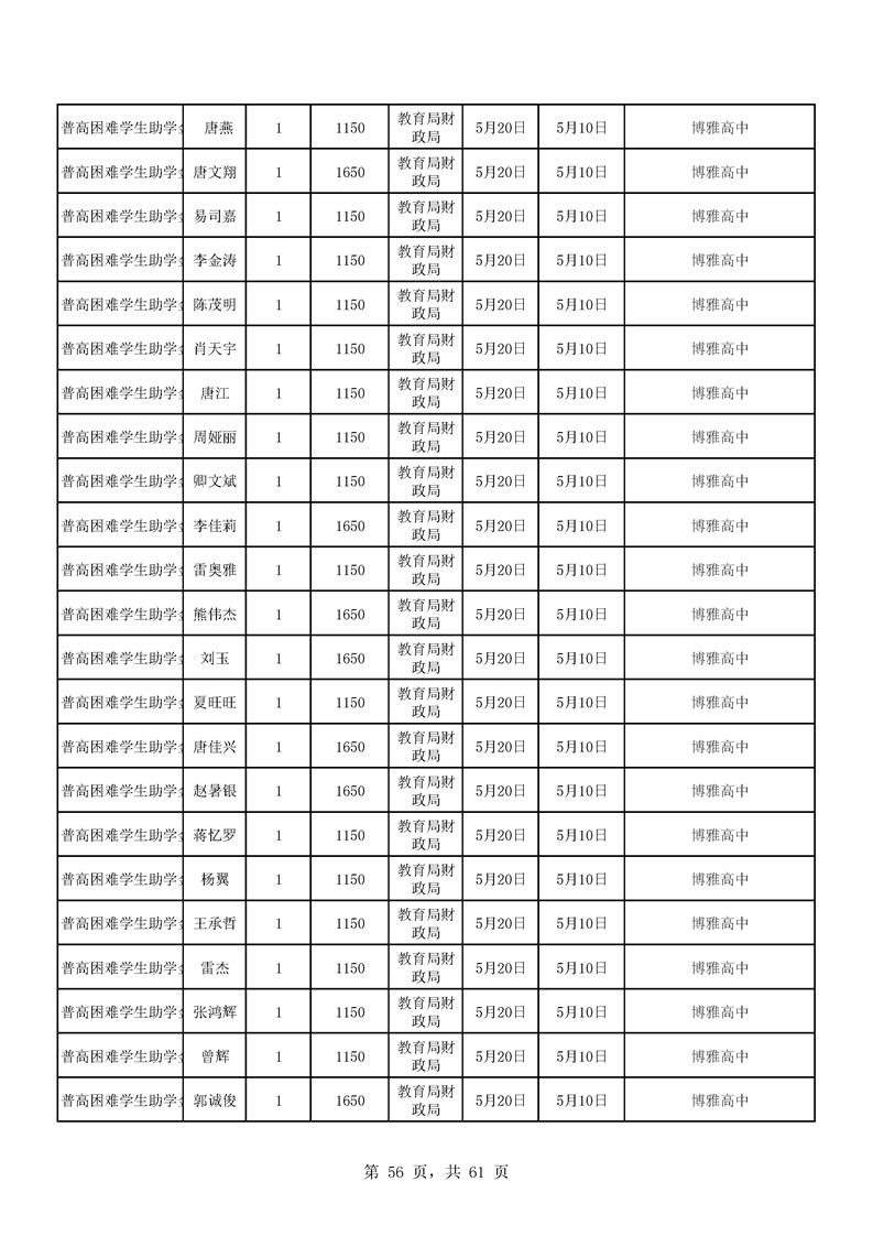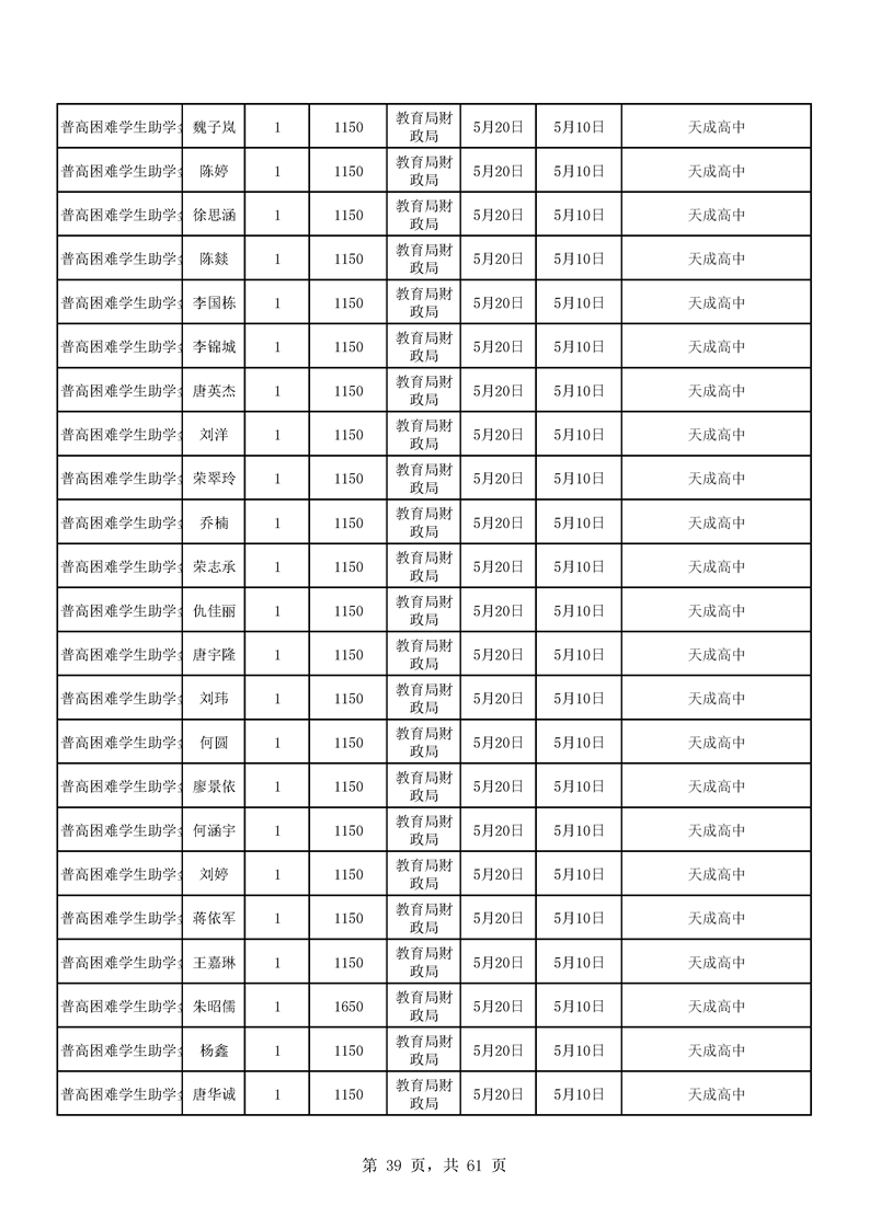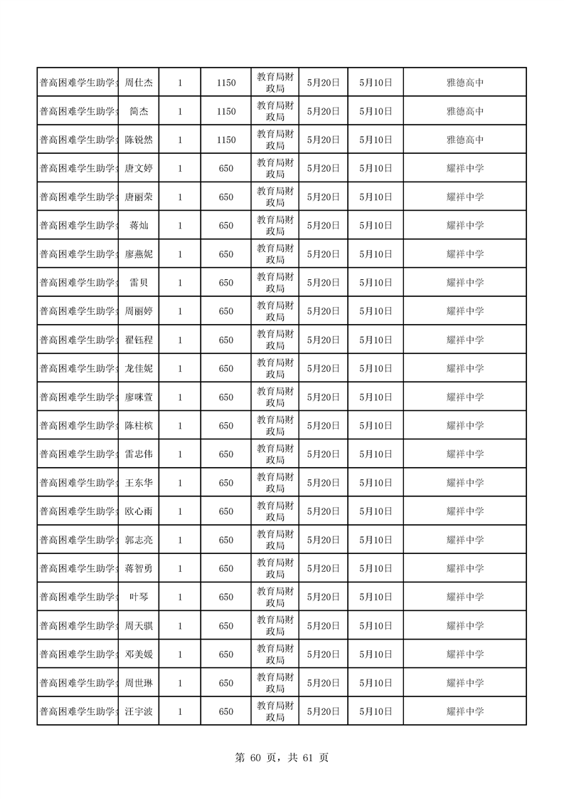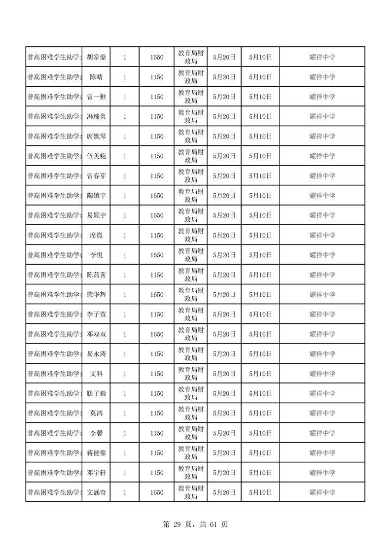 名称: 东安县2025年春季普通高中学校困难学生助学金公示表
