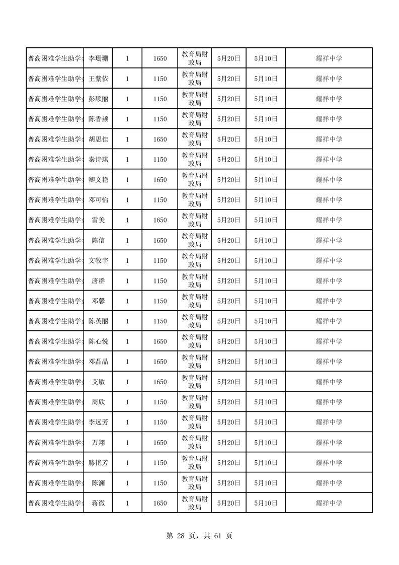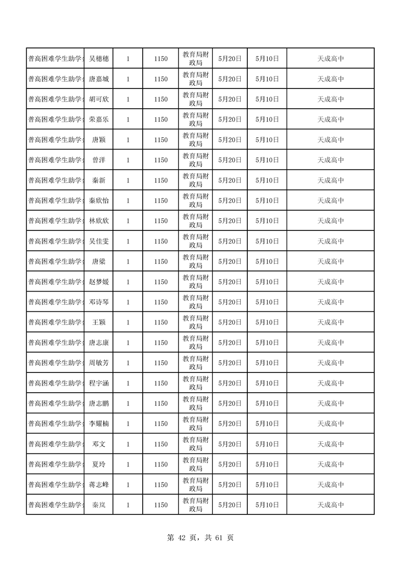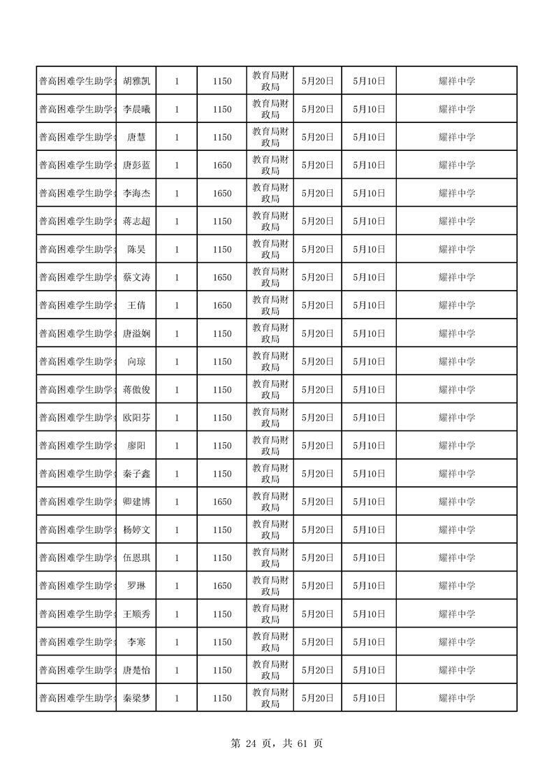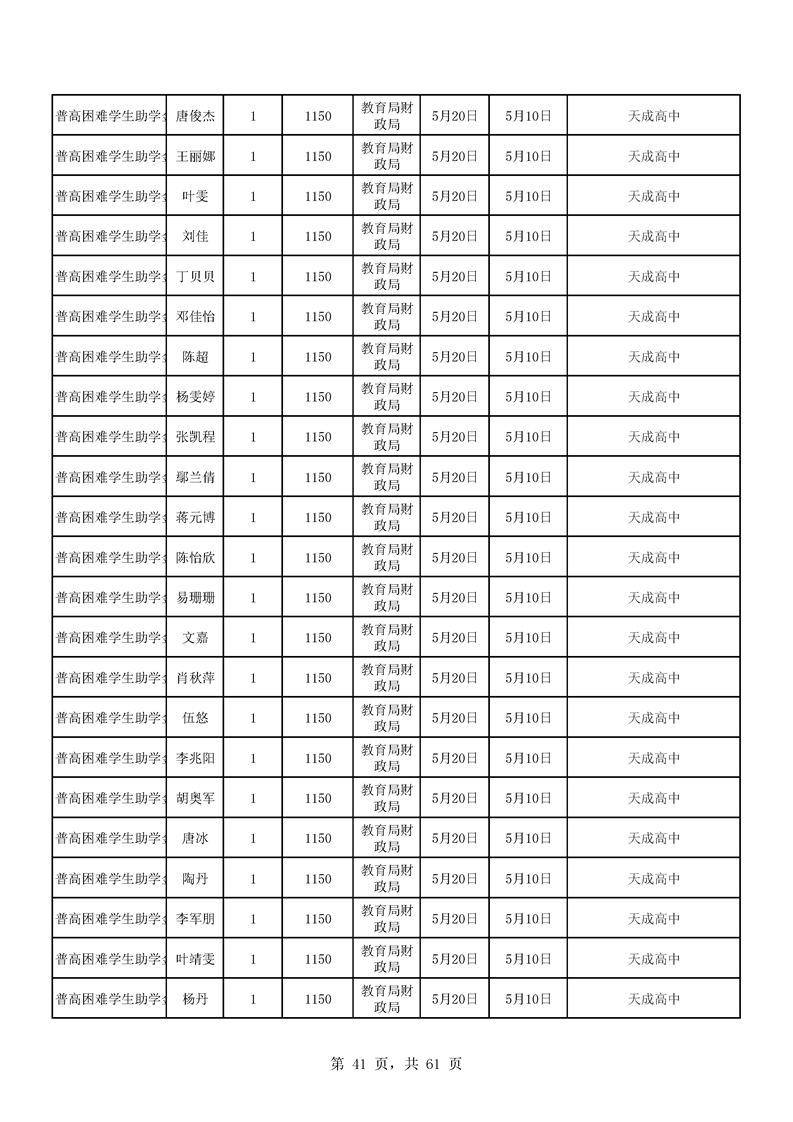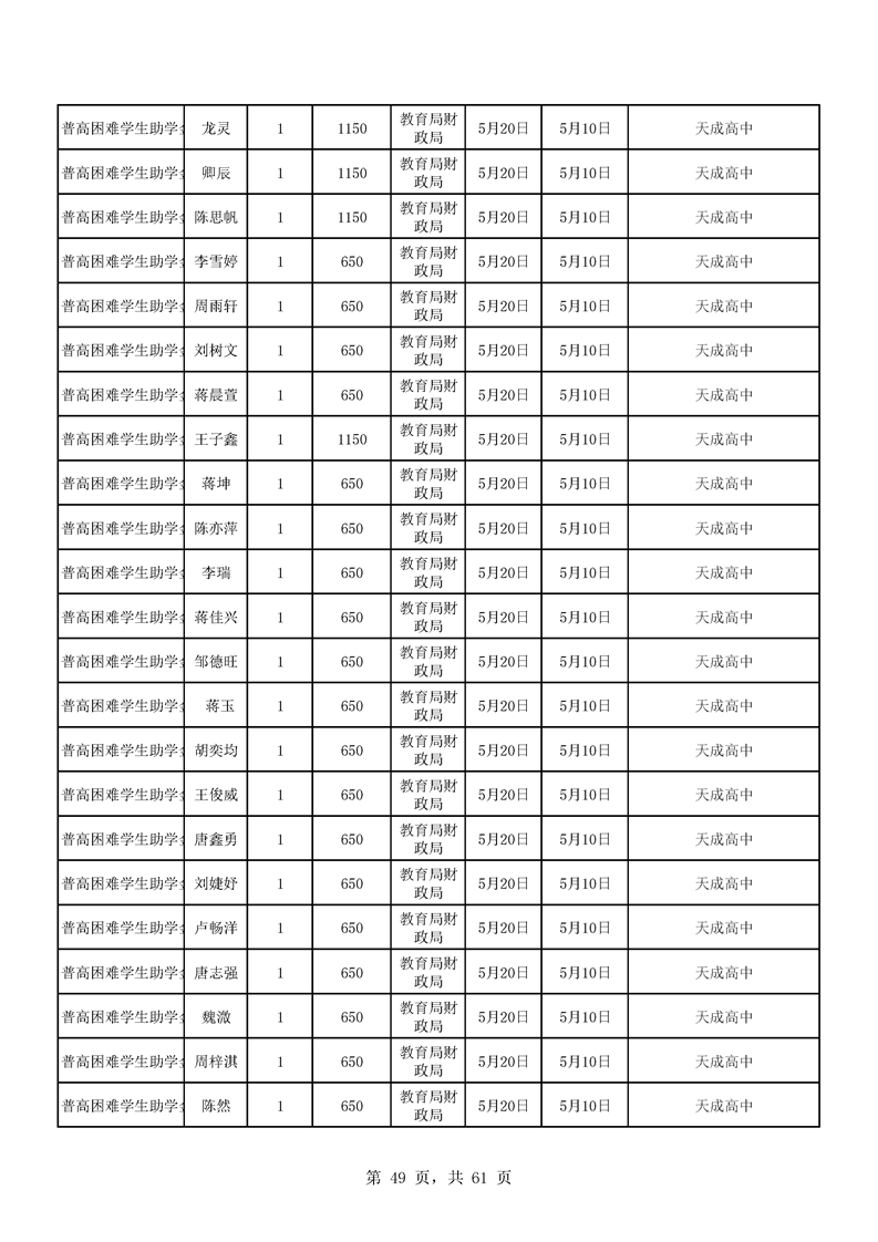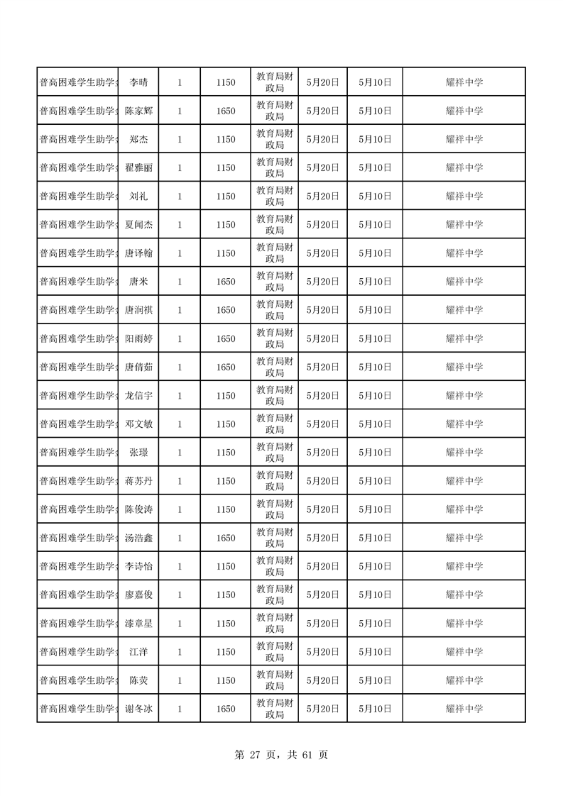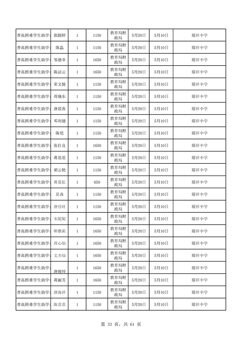 名称: 东安县2025年春季普通高中学校困难学生助学金公示表