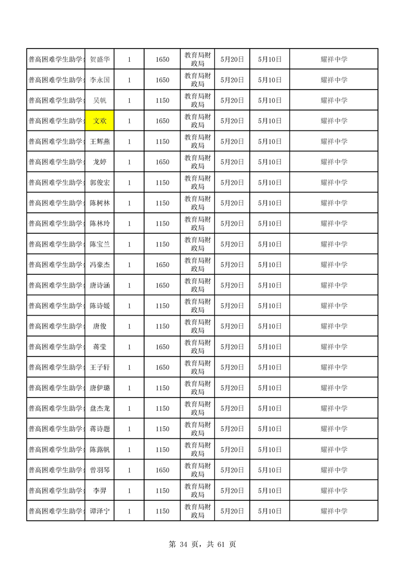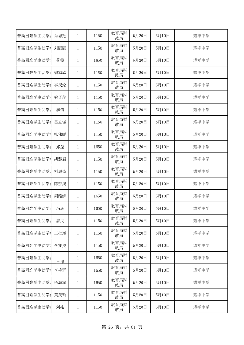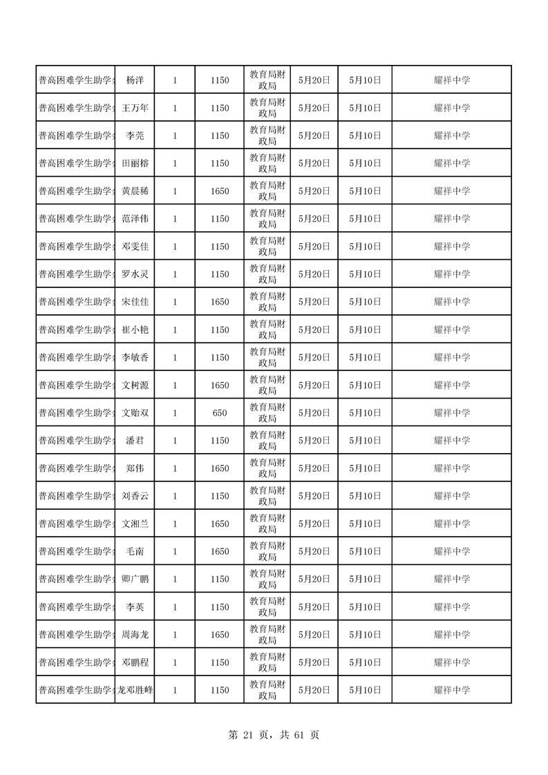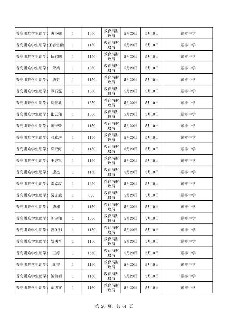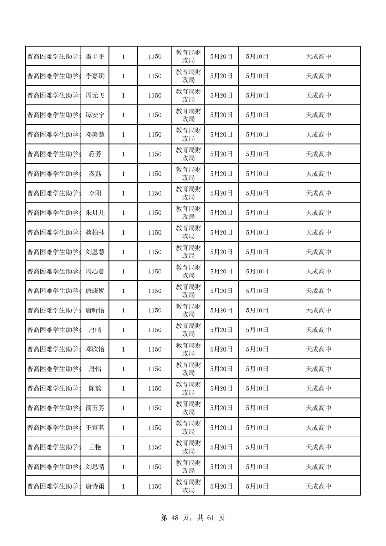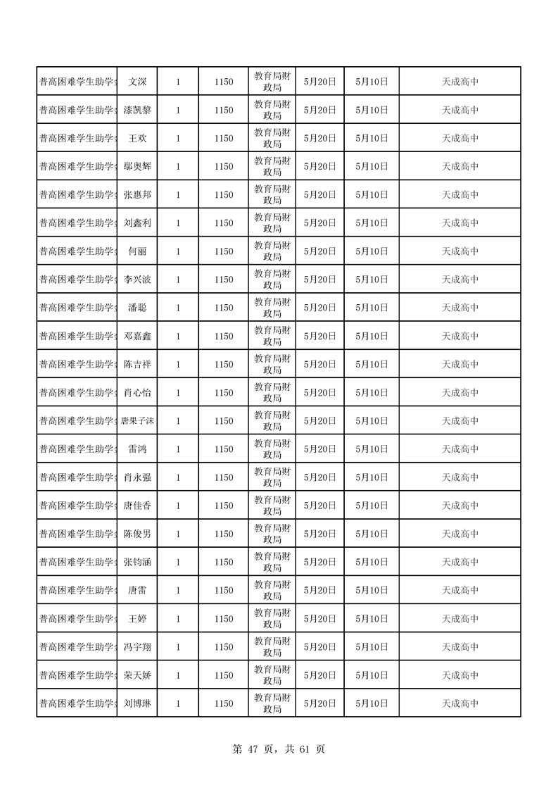 名称: 东安县2025年春季普通高中学校困难学生助学金公示表