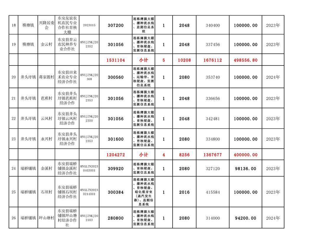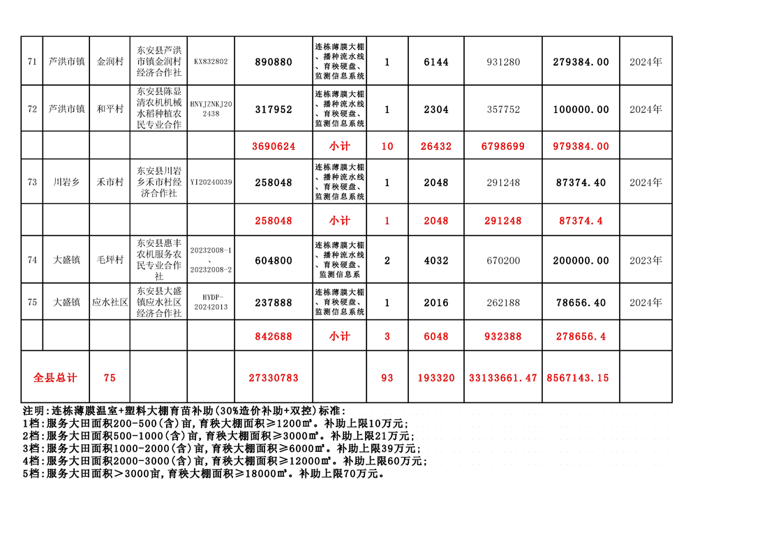 名称: 东安县2023-2024年各乡镇新建集中育秧设施拟补贴名单公示