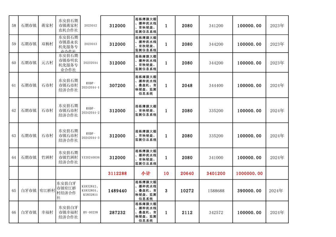 东安县2023-2024年各乡镇新建集中育秧设施拟补贴名单公示
