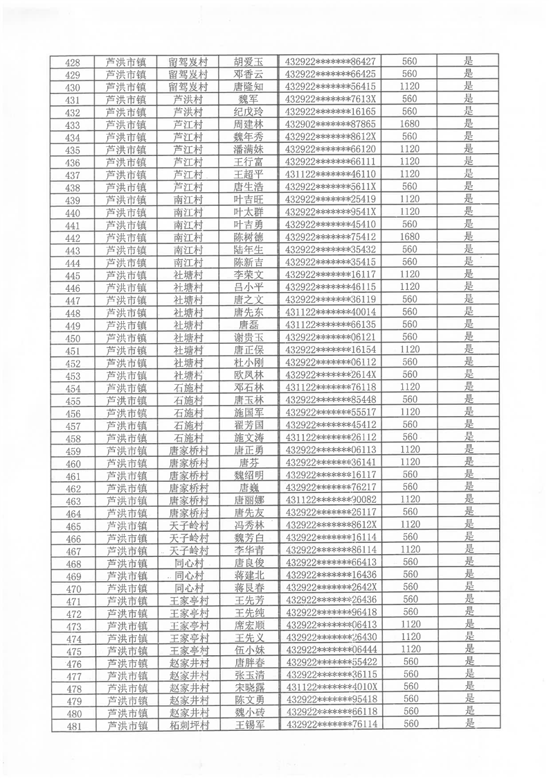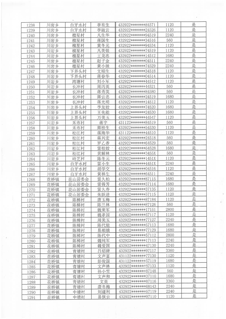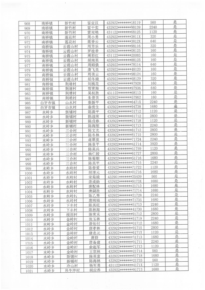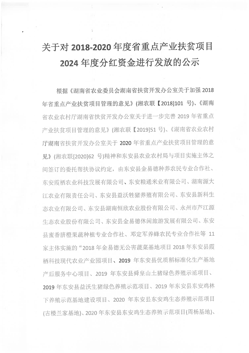 东安县2018年-2020年省重点产业帮扶项目2024年度分红发放公示