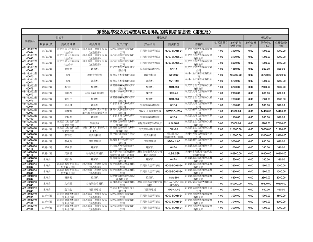 名称: 东安县2025年发放第五批农机购置补贴资金的公示