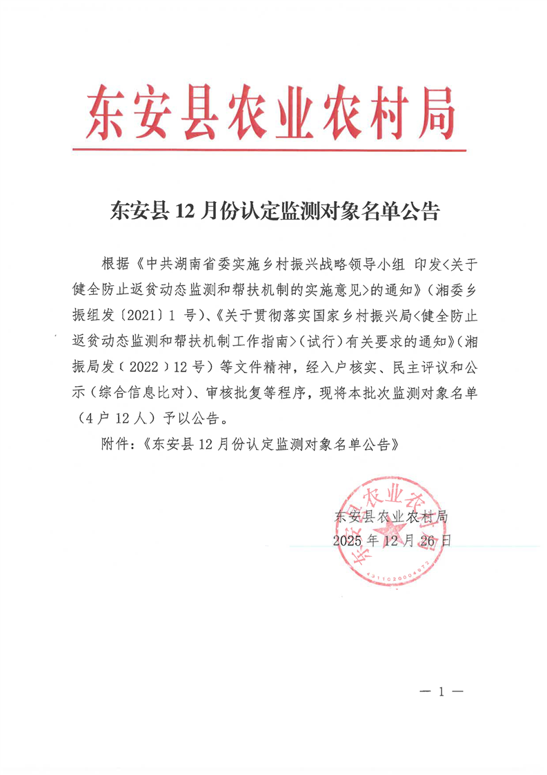 发文机关: 东安县农业农村局 发文日期: 2025-12-26