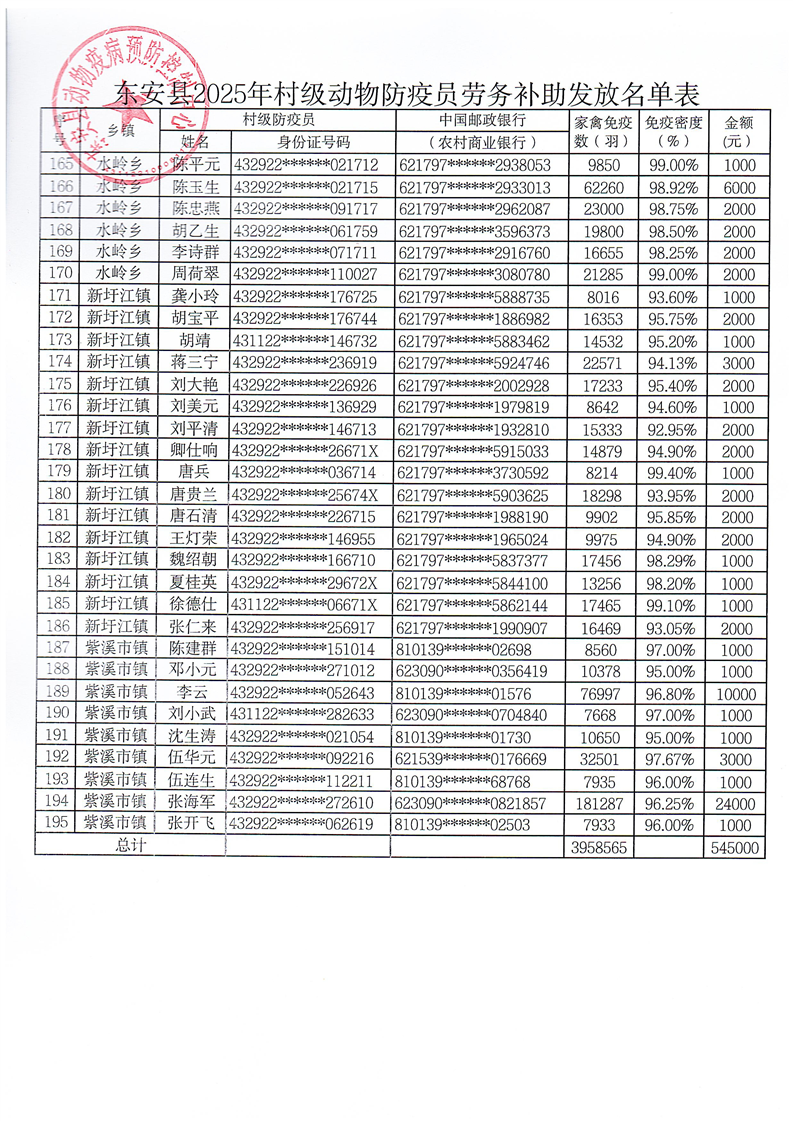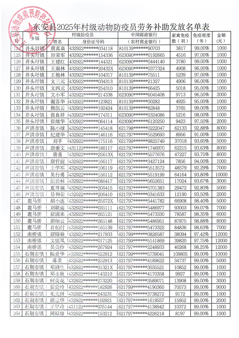 关于发放2025年度村级动物防疫员劳务补助的公示