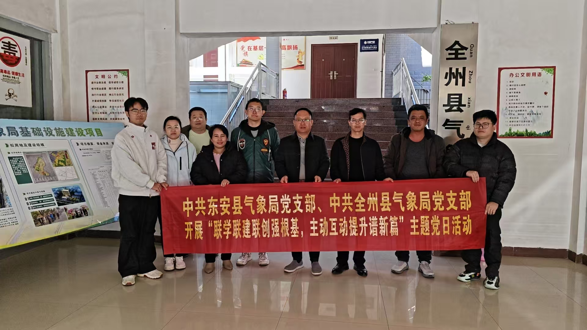 为进一步深化“三联促三动”工作机制,推动党建与业务同频共振,强化跨区域气象服务协同能力,11月21日,东安县气象局党支部与全州县气象局党支部以“联合联建联创强根基 主动互动提升谱新篇”为主题联合开展主题党日活动。