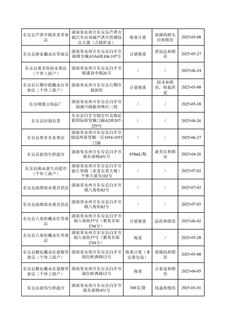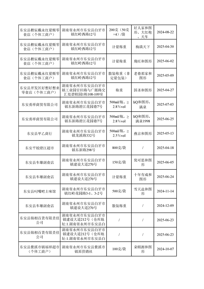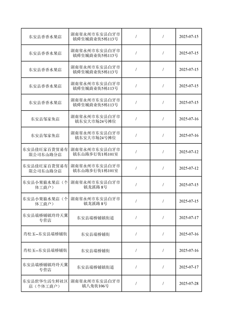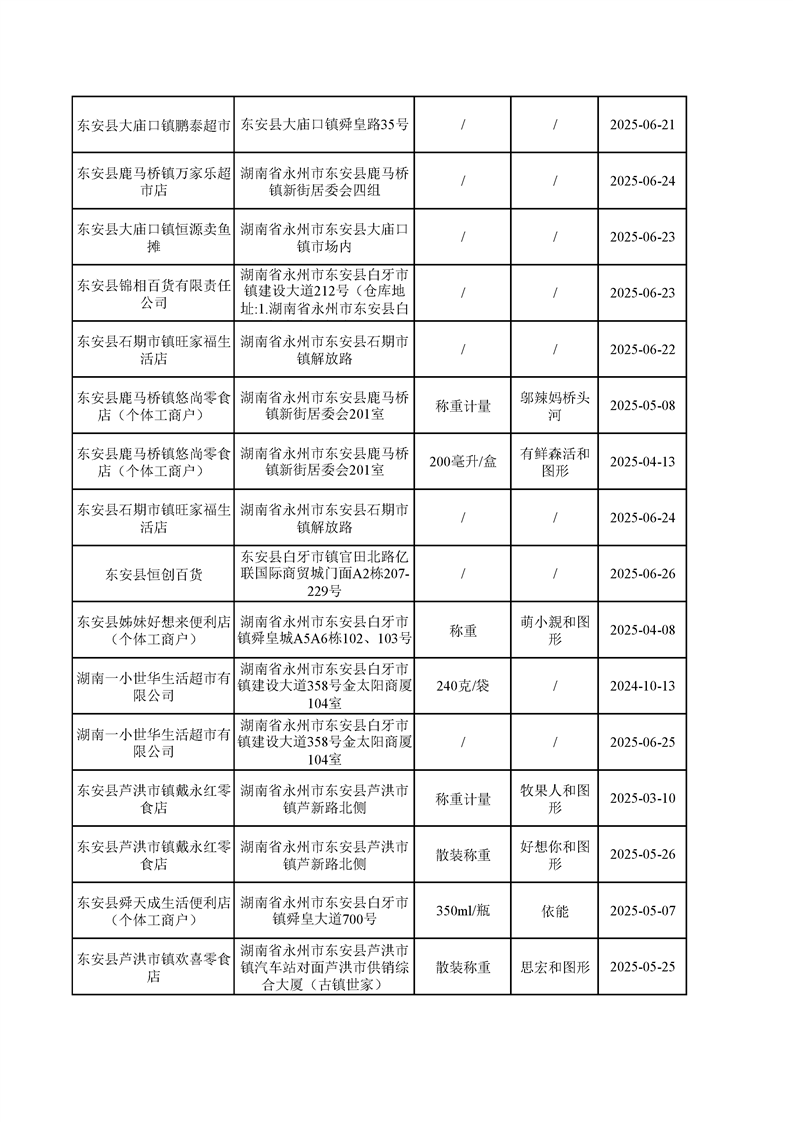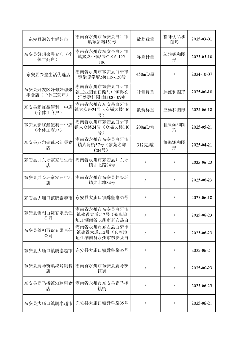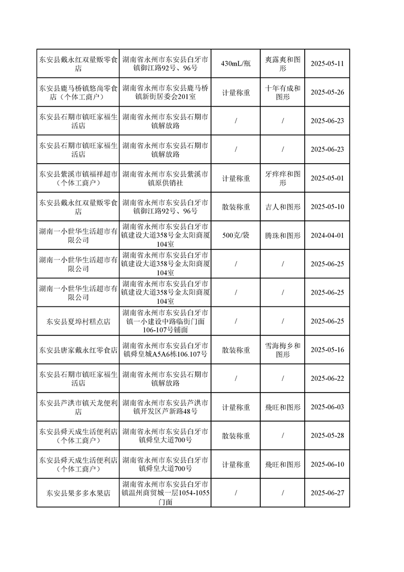 名称: 东安县市场监督管理局关于2025年第三季度东安县食品安全监督抽检情况公示(第六期)